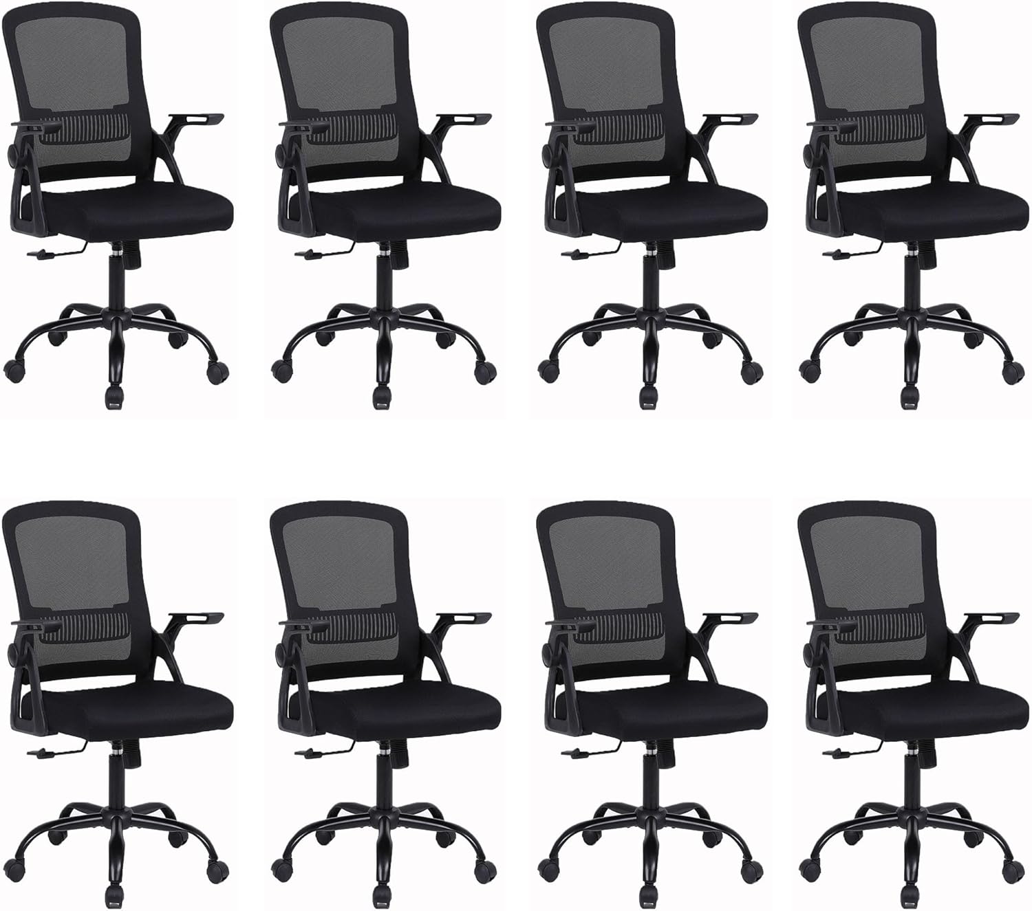 Office Chair, Ergonomic Desk Chair with Lumbar Support, Breathable Mesh Chair with Flip-up Armrests and Mid Back, Comfy Task Computer Height Adjustable Swivel Chair (8, Black)