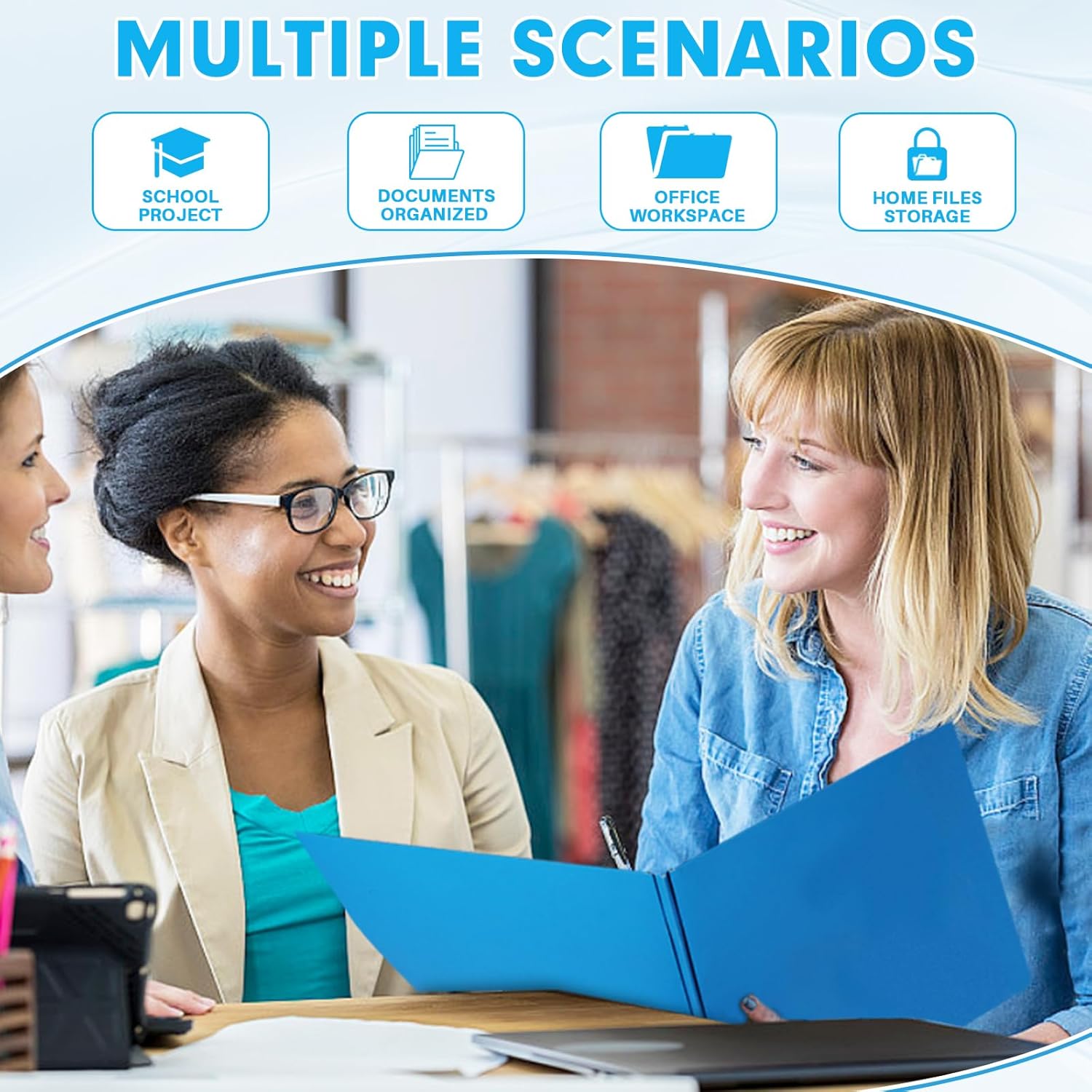 - TWO POCKET FOLDER SET: 75 Pack of blue folders, each folder with 2 inner pocket, 3 prongs and 2 business card slots. Crafted from texture and heavyweight paper stock, not easy to break and deform