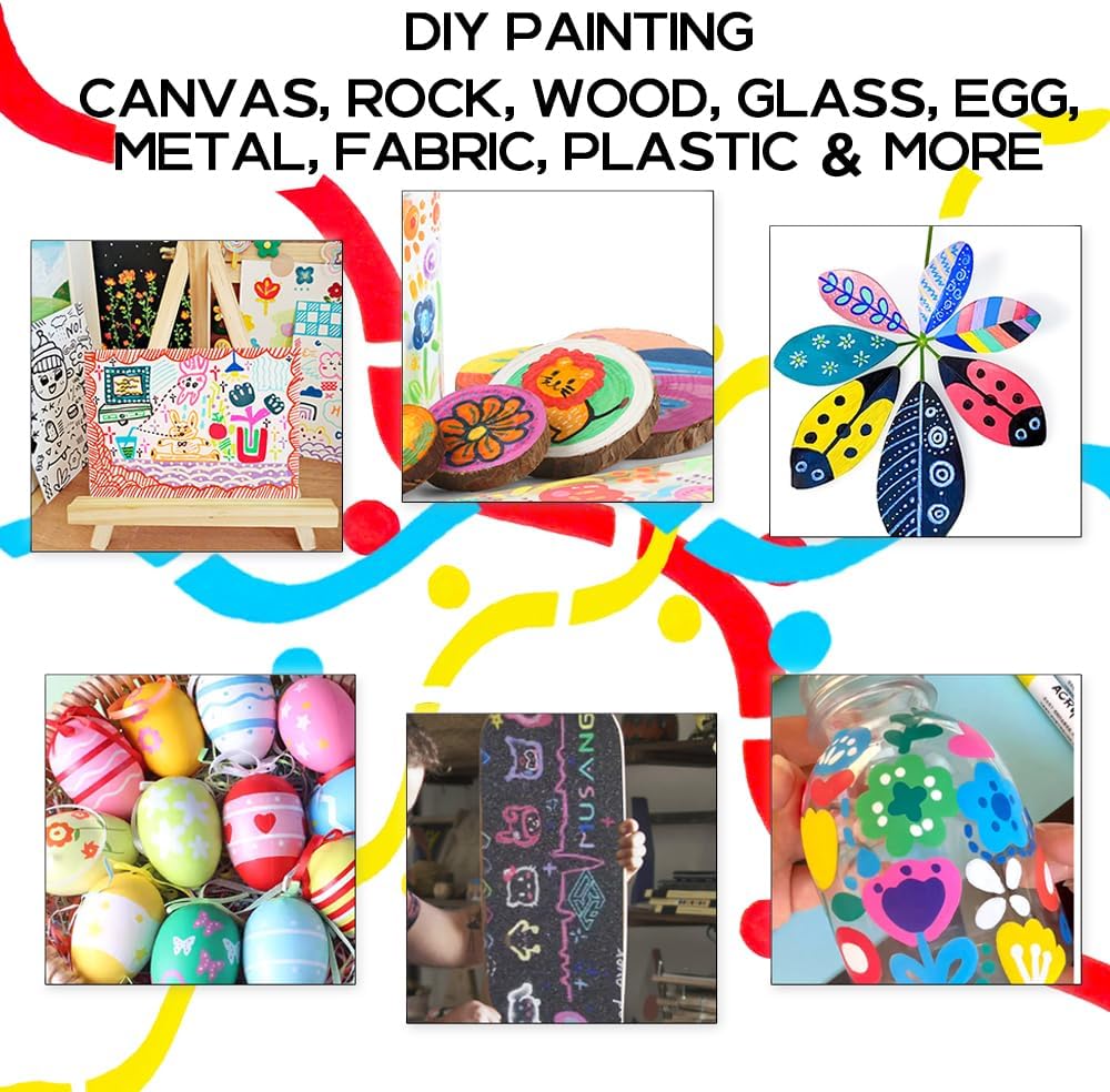 - Versatile acrylic paint pen set - These acrylic paint pens are suitable for wide range of surfaces like: rock, canvas, paper, leather, plastic, etc. Making it perfect for unleashing your creativity and exploring new artistic possibilities. To ensure the longevity of our acrylic markers, it's important to store them properly when not in use. Best store them horizontally.