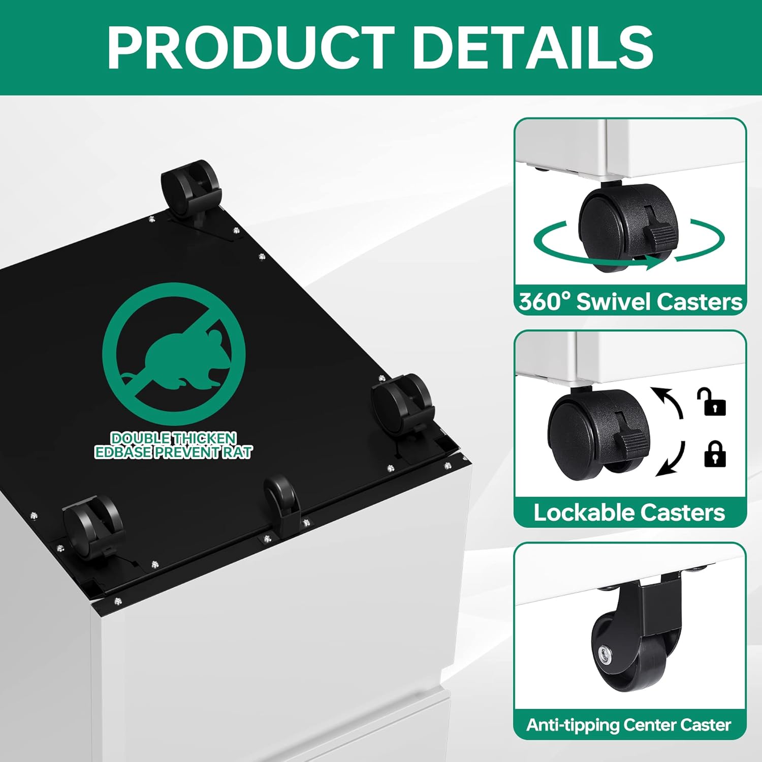 - 〖Durable Metal Material〗File cabinet is made of 0.8mm thick steel,whole is solid and does not deform, and it is stronger than wooden filing cabinets in terms of firmness, durability, moisture resistance, and fire protection.