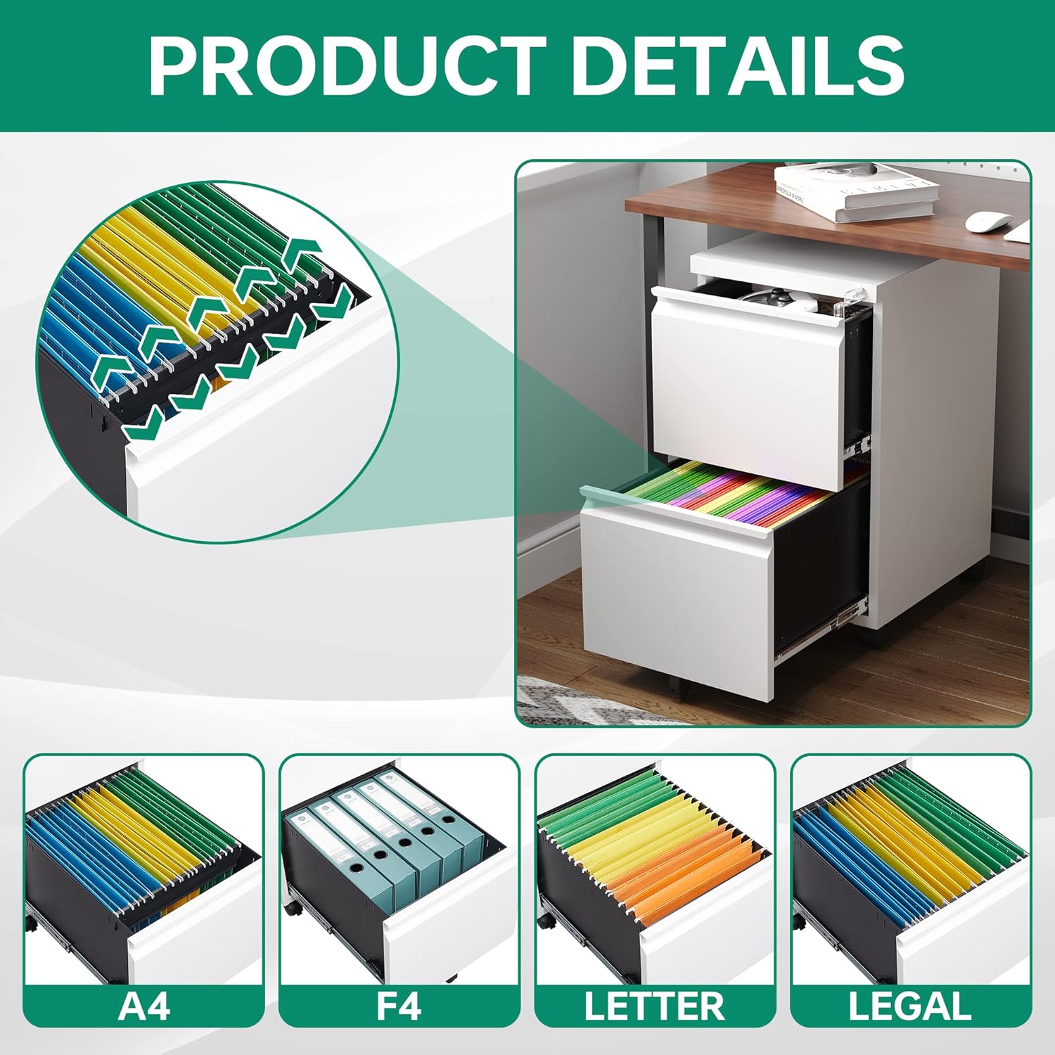 Letaya 2 Drawer Mobile File Cabinet with Lock,Under Desk Metal Filing Cabinets for Home Office Organizer Letters/Legal/A4(White-Requires Installation)
