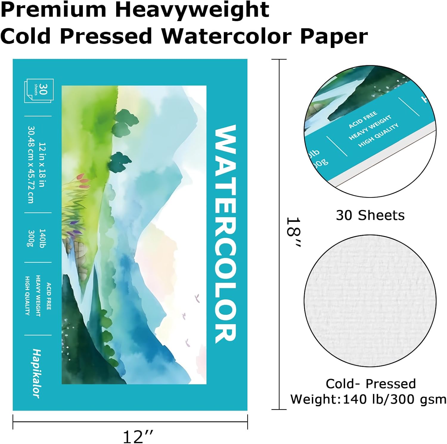 - 【Premium Heavyweight Cold Pressed Watercolor Paper】1 Pack of 12"x18" Professional Heavyweight Watercolor Pads. 30 sheets in each watercolorpad, total of 30 premium watercolor paper sheets at the affordable price, that are ideal for watercolor and mixed media techniques.