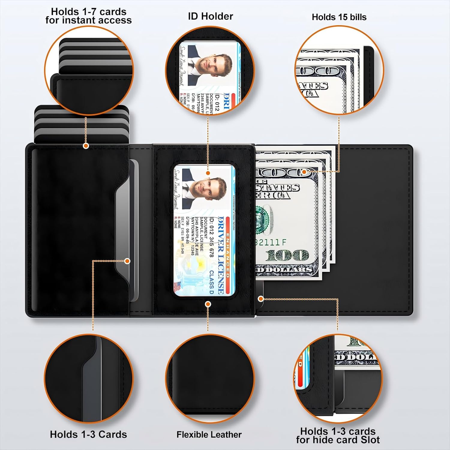 - 【Premium Craftsmanship】Discover the perfect blend of quality and functionality with our wallet. Crafted from premium microfiber leather and 6063 T5 aerospace-grade aluminum, it features a convenient side pop-up for easy access. Durable and stylish, it complements both business and casual settings.