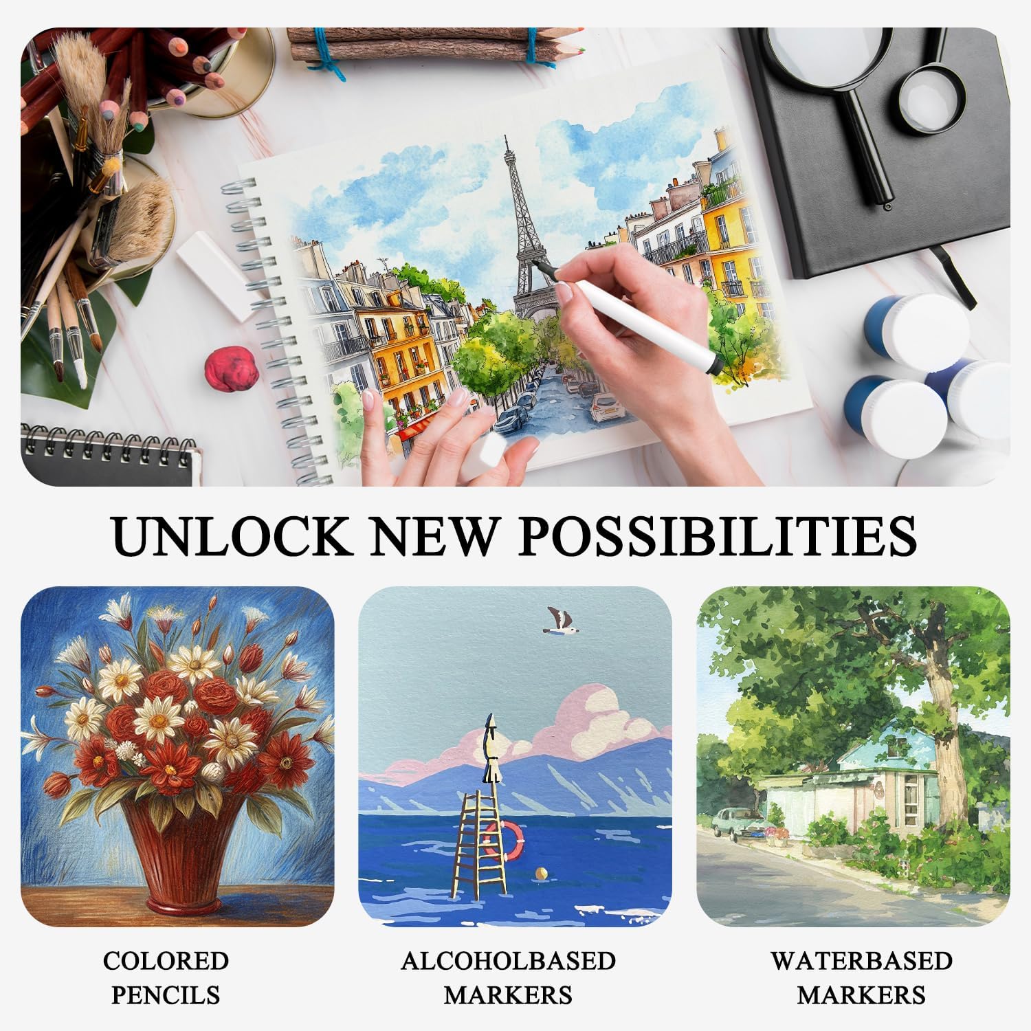 - Designed by Artists to Inspire Creativity: Belenova sketchbook for alcohol markers is crafted to inspire. The marker sketchbook bleedproof design keeps your artwork clean and vivid. This sketch pad for markers provides a smooth, vibrant surface. The art paper for markers enhances blending and layering. The 9x12 spiral bound sketchbook for markers offers both convenience and quality for every artist, kids art supplies.
