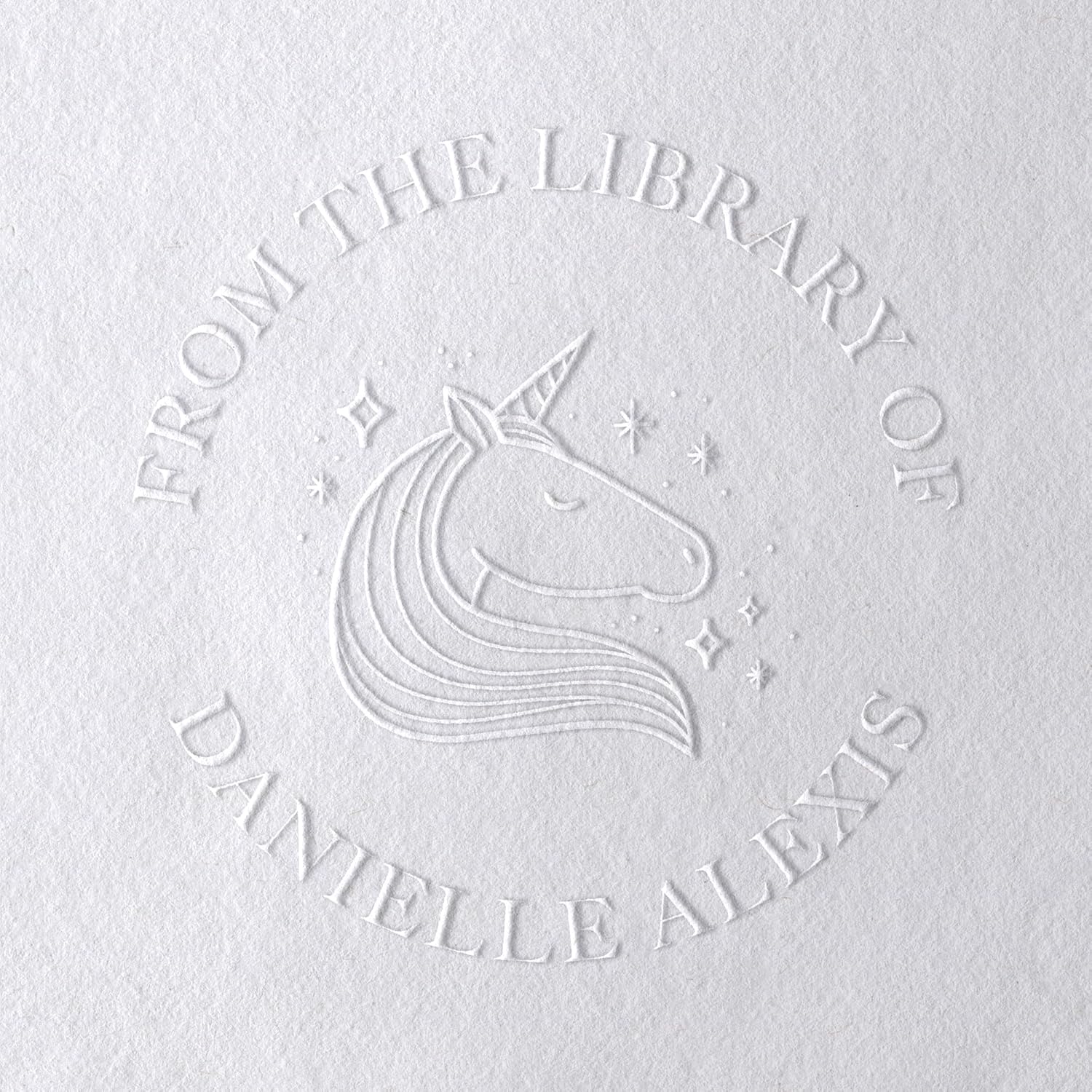 Personalized Book Embosser or Stamp Custom Round Library Embosser Teacher Library Book Stamp, Ex Libris Stamp, Gift for Book Lover | Wooden or Self Inking Stamp or Embosser (Unicorn)