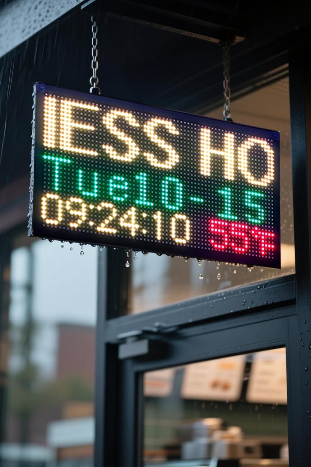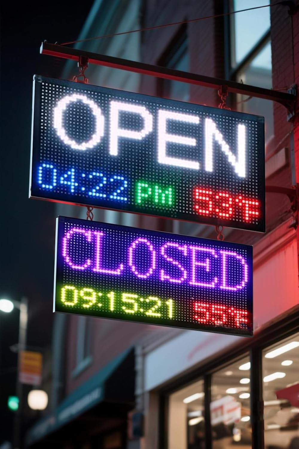 - Multi Functional Programmable LED Sign: This LED sign programmable full-color waterproof with remote control, equipped with a paper version of the user manual. The LED light sign has a lifespan of over 10000 hours AC 80-240V, hanging type.Friendly Tip: When you activate the "LED CLOCK" option, you'll see the screen flicker briefly. This is a visual confirmation that your new settings have been applied and saved.