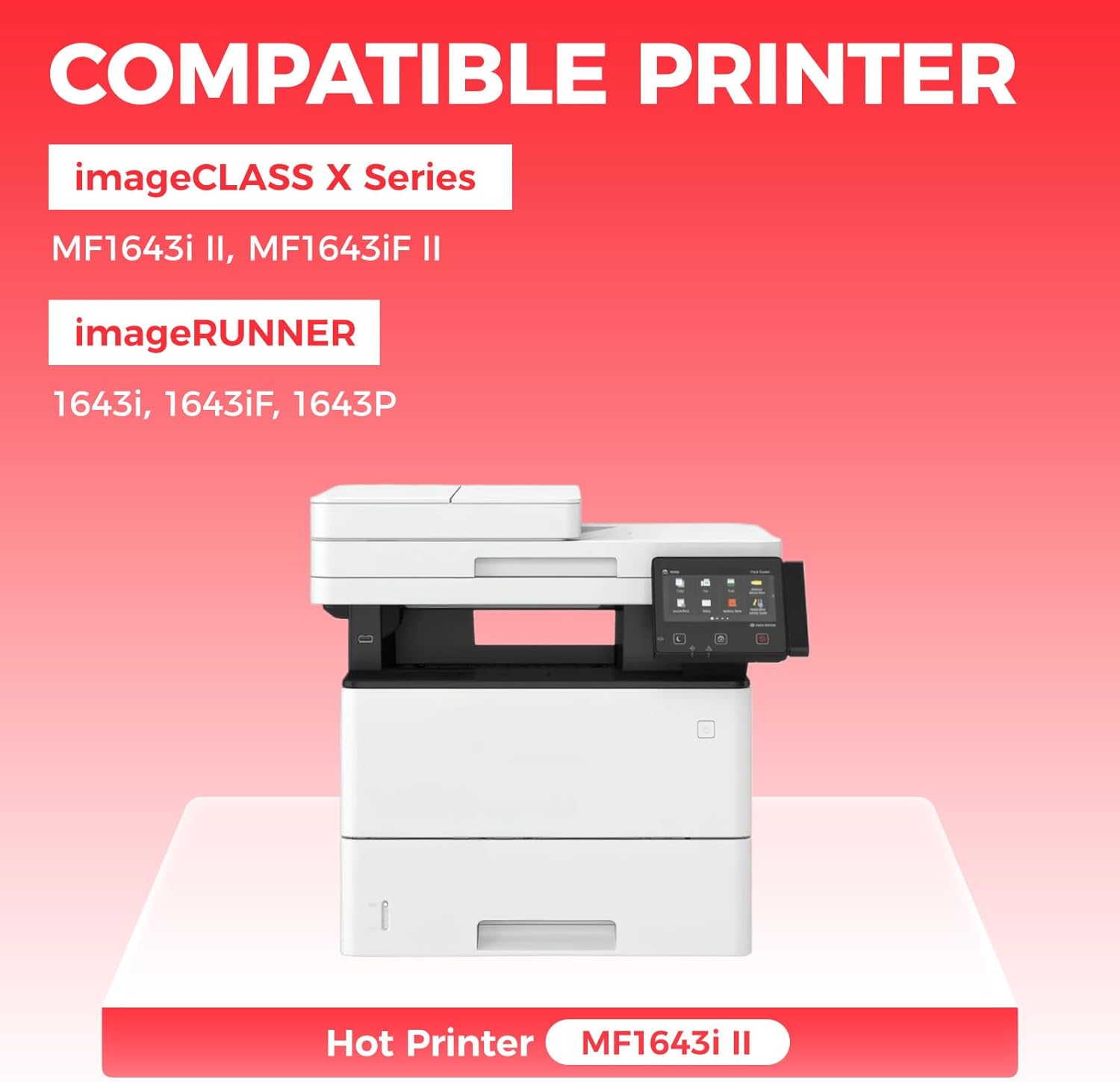 - Compatible Printers: Compatible with Canon imageCLASS X MF1643i II, imageCLASS X MF1643iF II, imageRUNNER 1643i 1643iF 1643P Series Printer.
