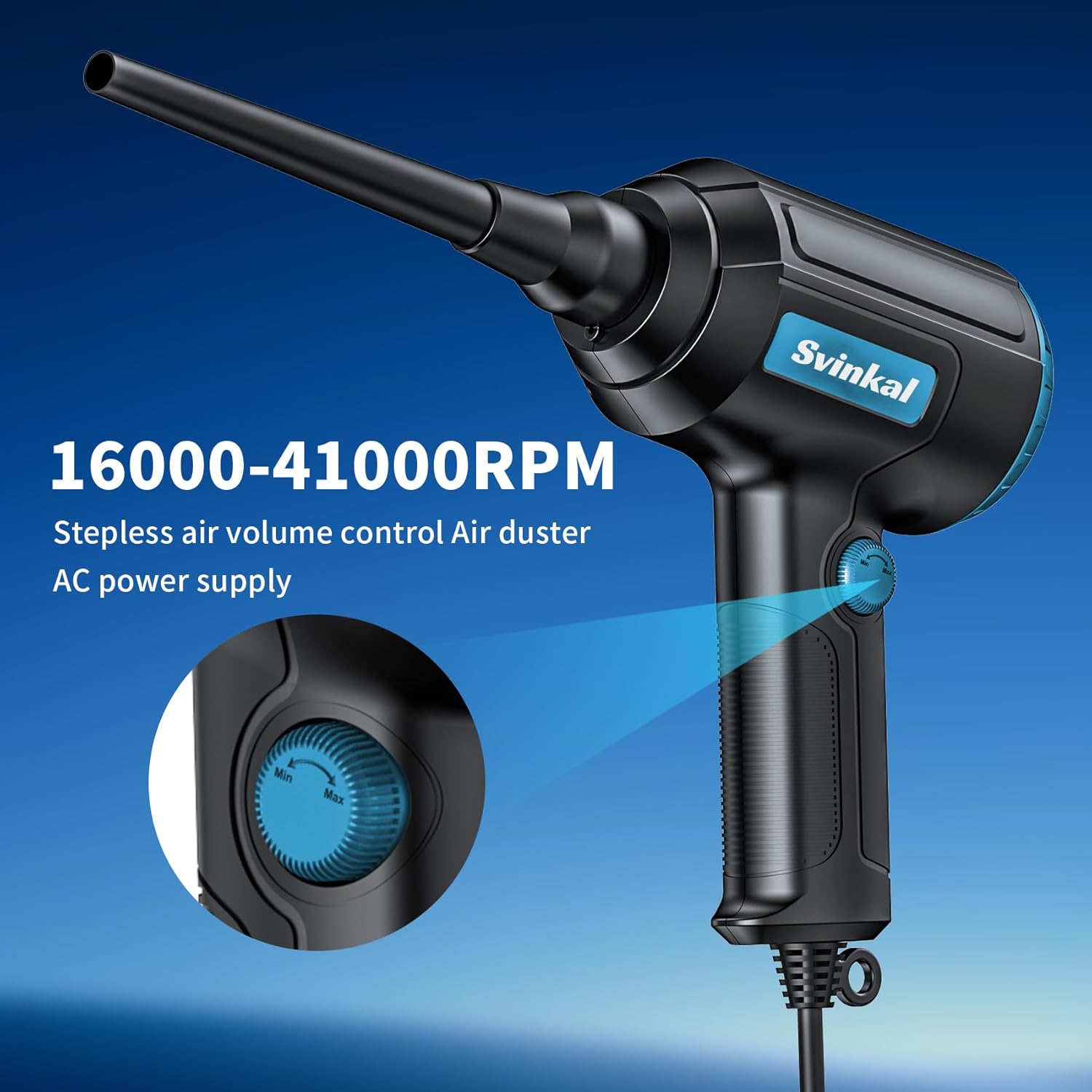 Compressed air Duster Electric 500W, Canned air Replacement, 40000RPM Air Blower, Stepless Speed, an AC dust Blower with 6ounces of Blowing Power for Computer Keyboards etc Electronic Duster