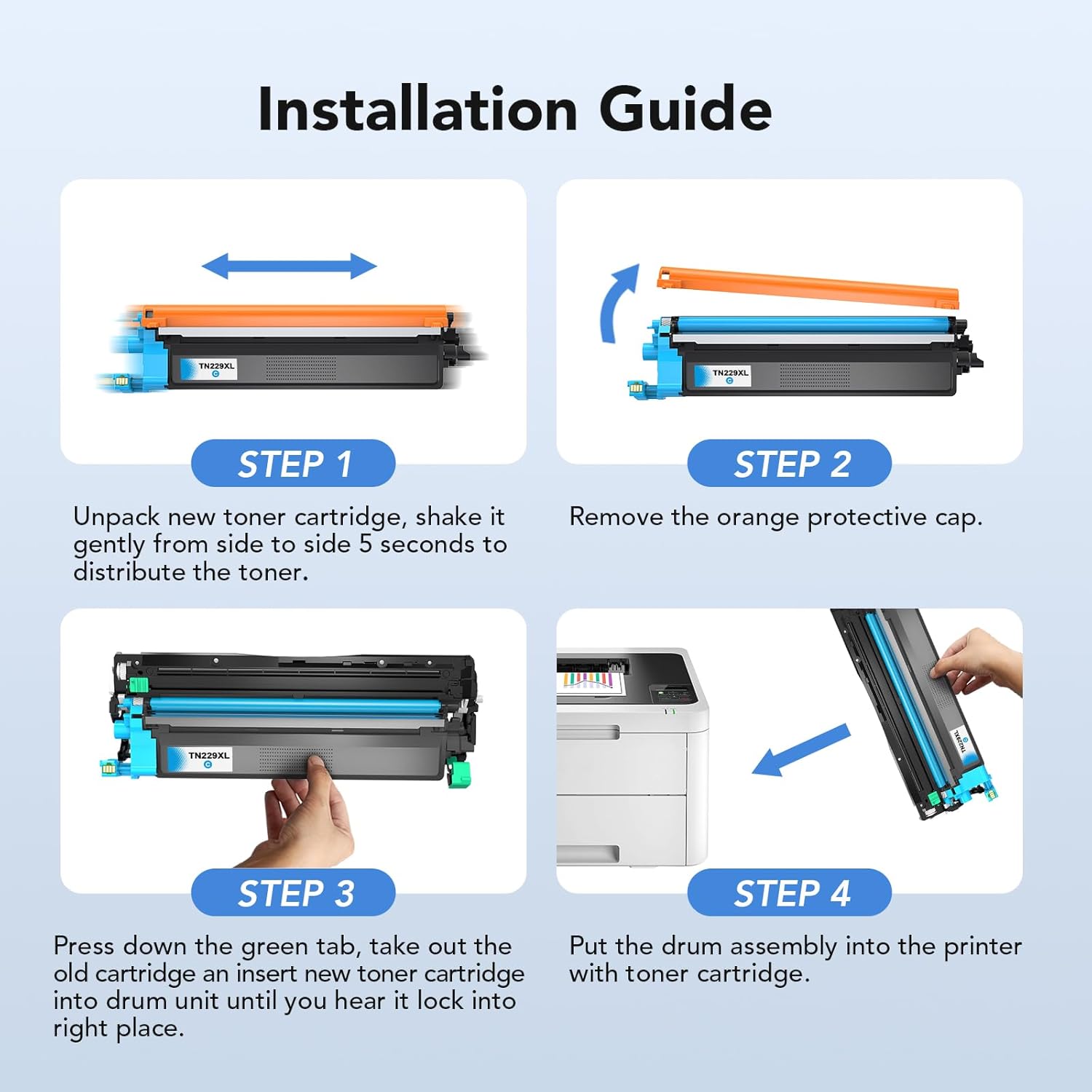 - Advantages: With a number of automatic and patented technology to create TN229XL Toner Cartridges, equipped with the latest upgraded chips to ensure high compatibility