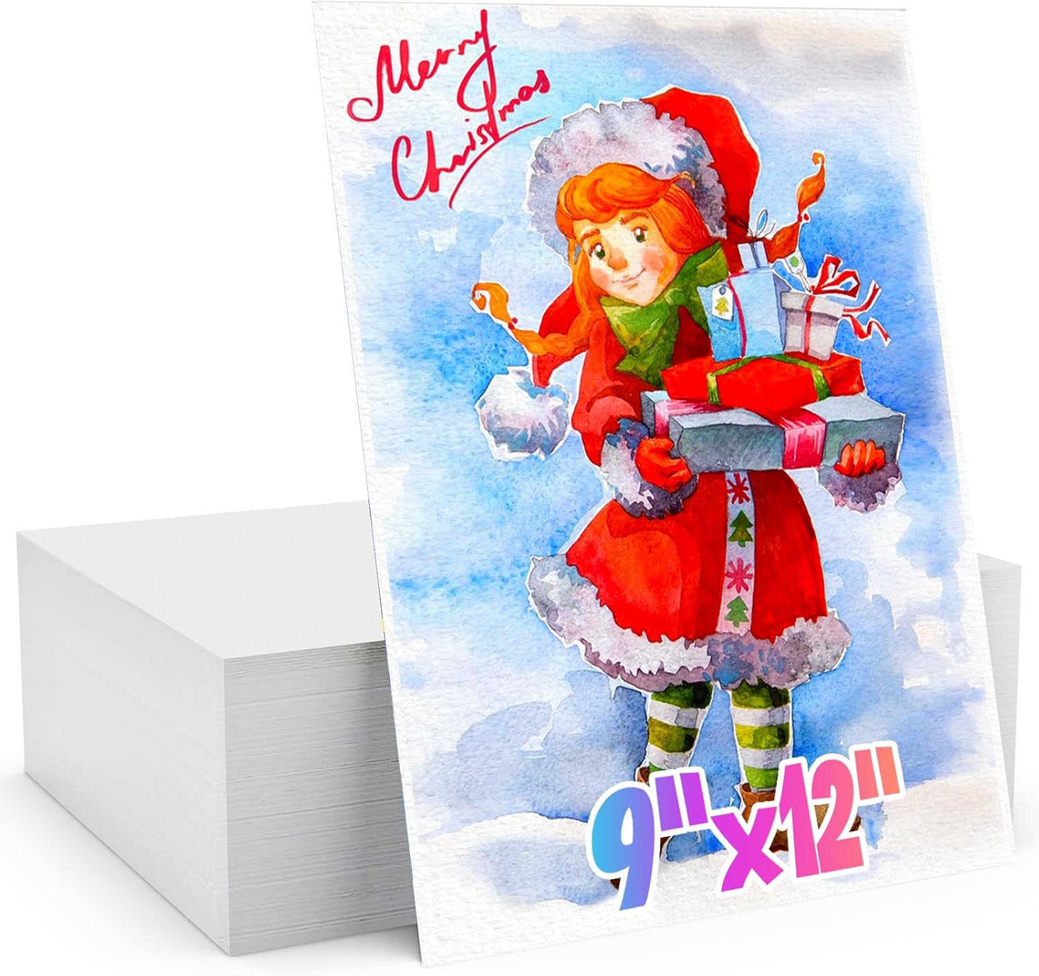 - 【Budget-Friendly Selected Gift】This 9" x 12" watercolor paper is ideal for acrylic, watercolor, sketching, collage, and more. This product is suitable for artists of all levels, including children, students, beginners, artists, amateurs, professionals. It is ideal for educational projects, office supplies or art projects. It is also recommended by teachers as an economical choice for students. Perfect for craft, painting, and creating art.