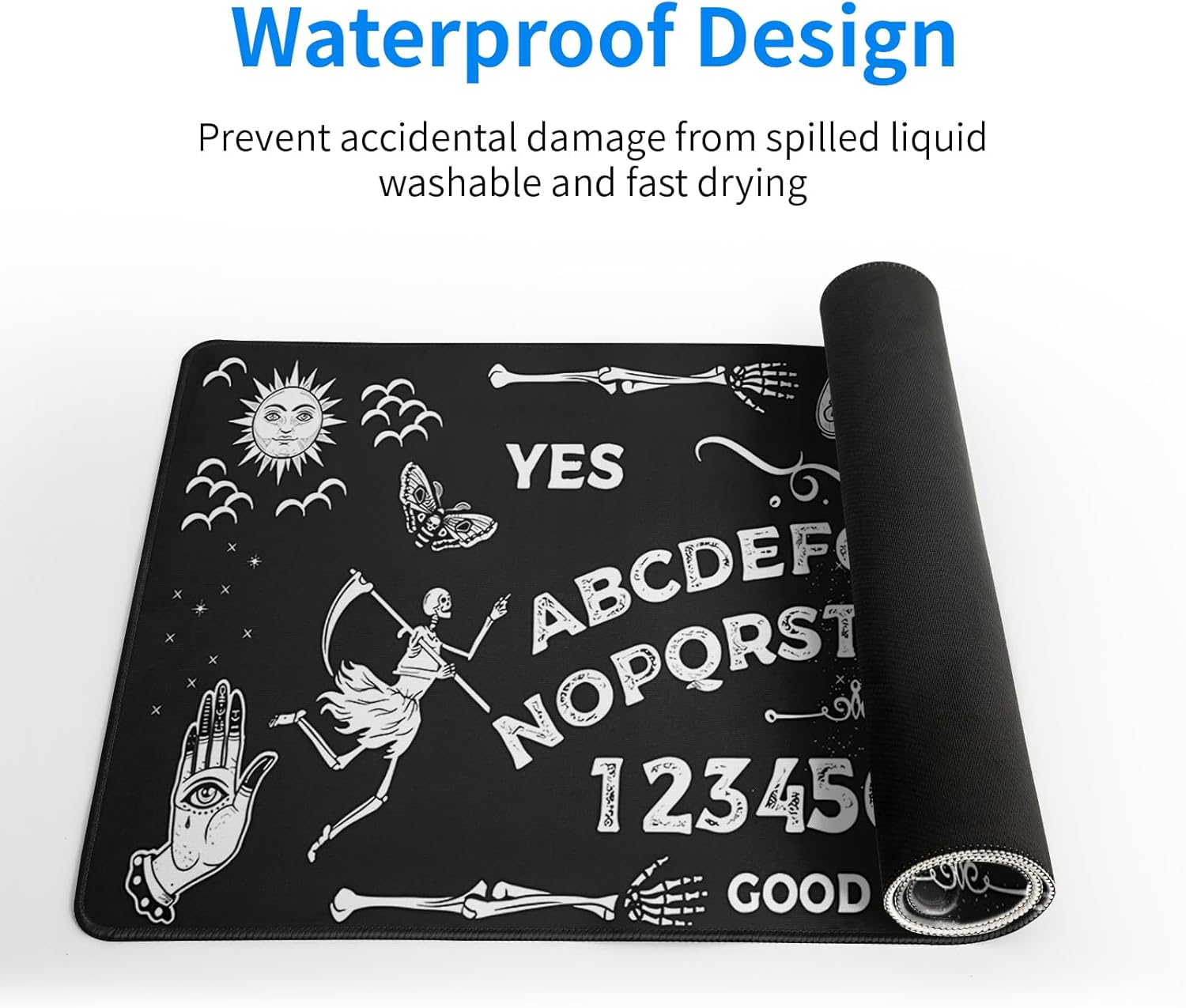 - β₯[Extended Mouse Pad Size]:The extended Mysterious Spirit Goth desk pad measures 27.6x11.8x0.12 inches that covers most of the desk. Offers a wide area to have your laptop, mouse and keyboard. You can freely move your mouse without any interruption and don't have to continually adjust the mat as you do with traditional mousepads.