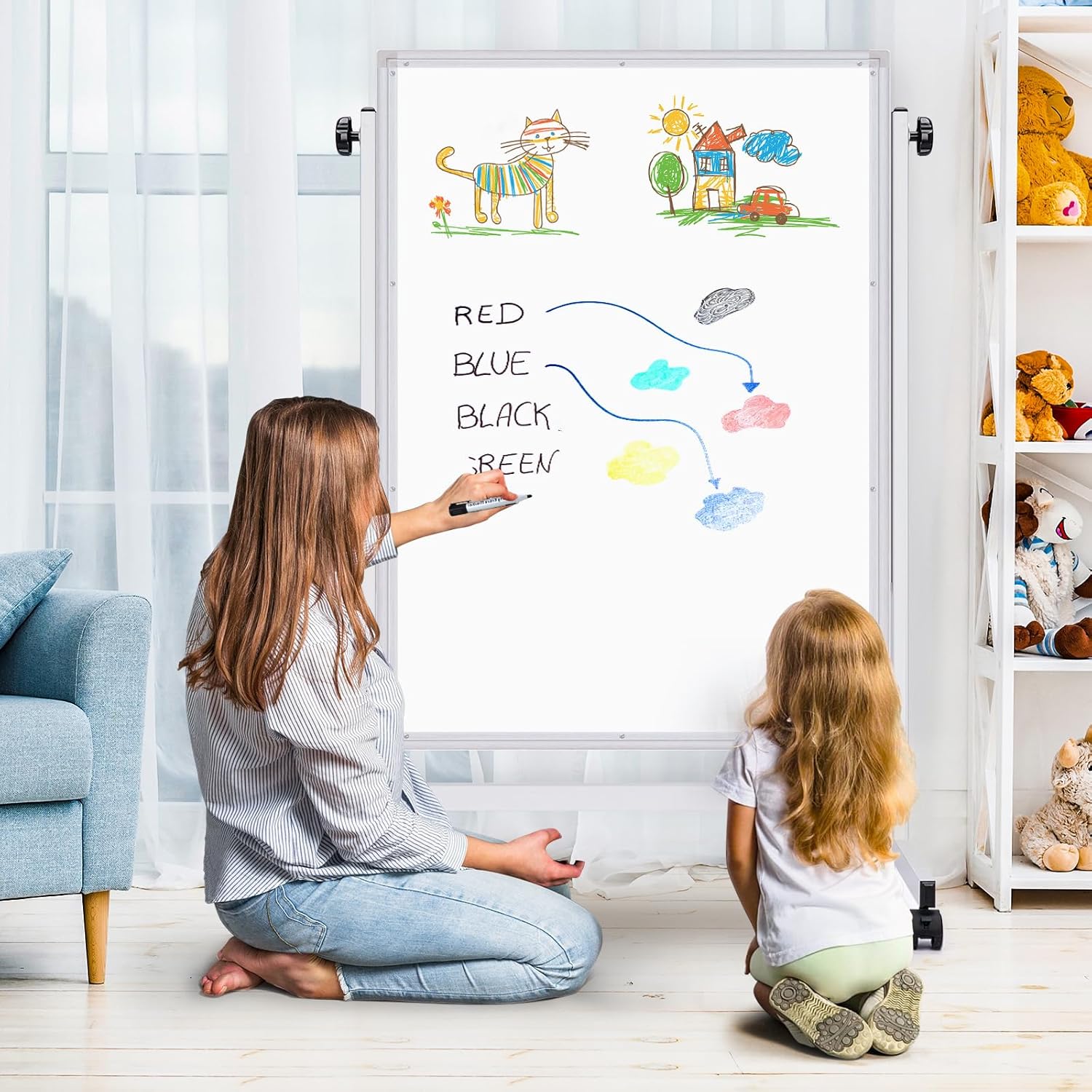 - Writing & Cleaning: Our double-sided standing dry erase board features a 0.16mm precision baked enamel finish that resists staining and ghosting. It comes complete with essential accessories: 1 magnetic eraser, 3 markers, and 6 magnets for a fully equipped experience