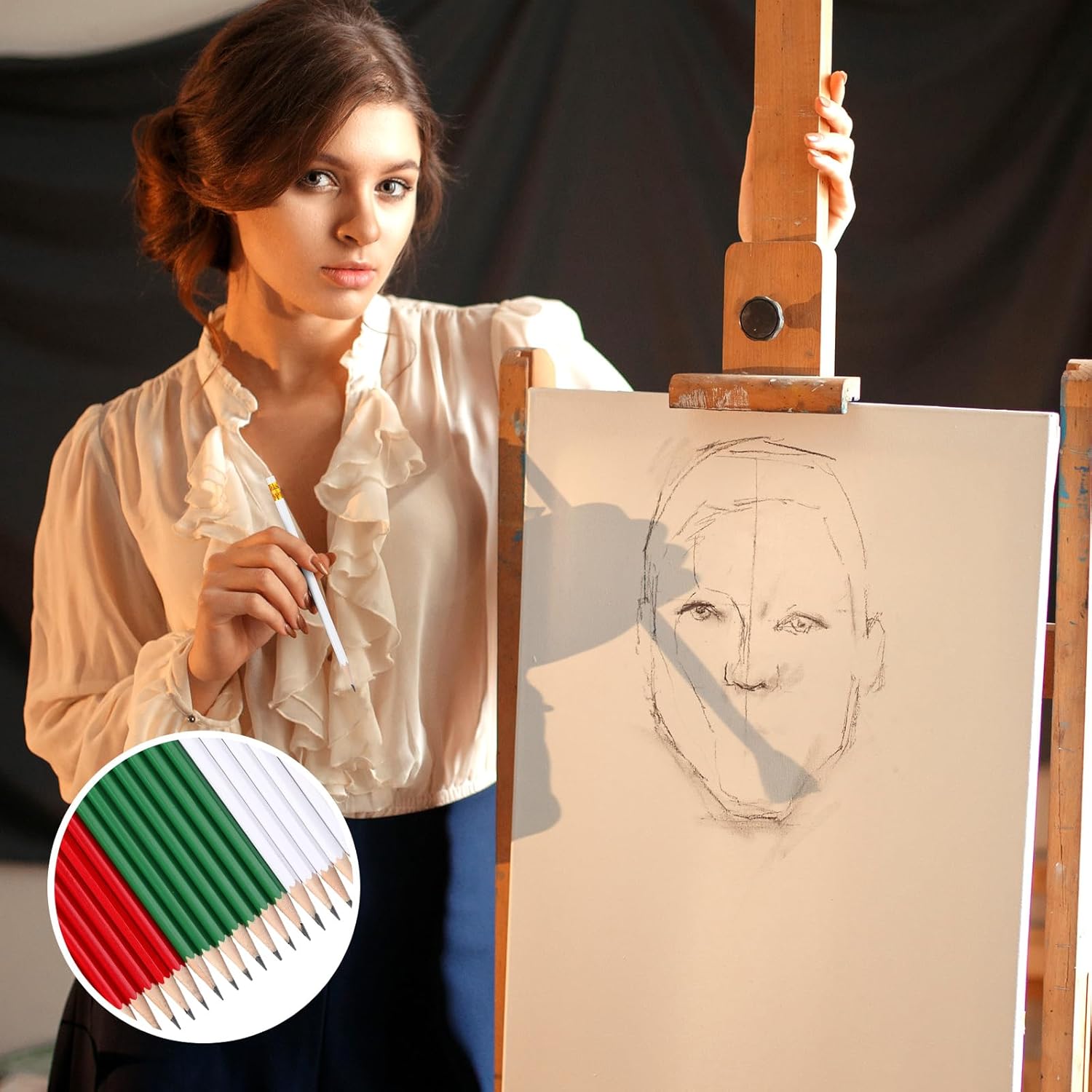 - Complete Your Writing Quest: dive into a writing journey with 60 pieces of quality wood cased pencils; Each plentifully packed kit comes with red green white barrel pencils capped with red erasers, wrapped in silver metal, ensuring your daily study and drawing needs; It also serves as an ideal supply that you can delightfully share with classmates and friends