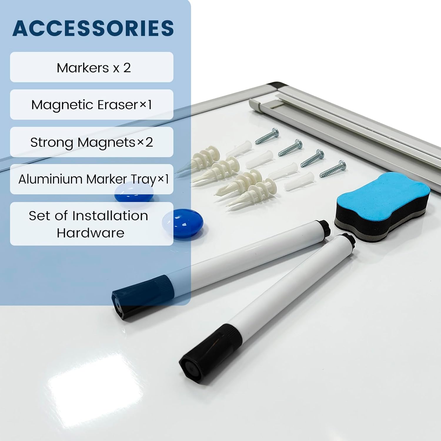 Folded Magnetic Whiteboard 60 x 40 Foldable Magnetic Dry Erase Board, Wall-Mounted Aluminum Frame Memo Whiteboard for Office Home and School