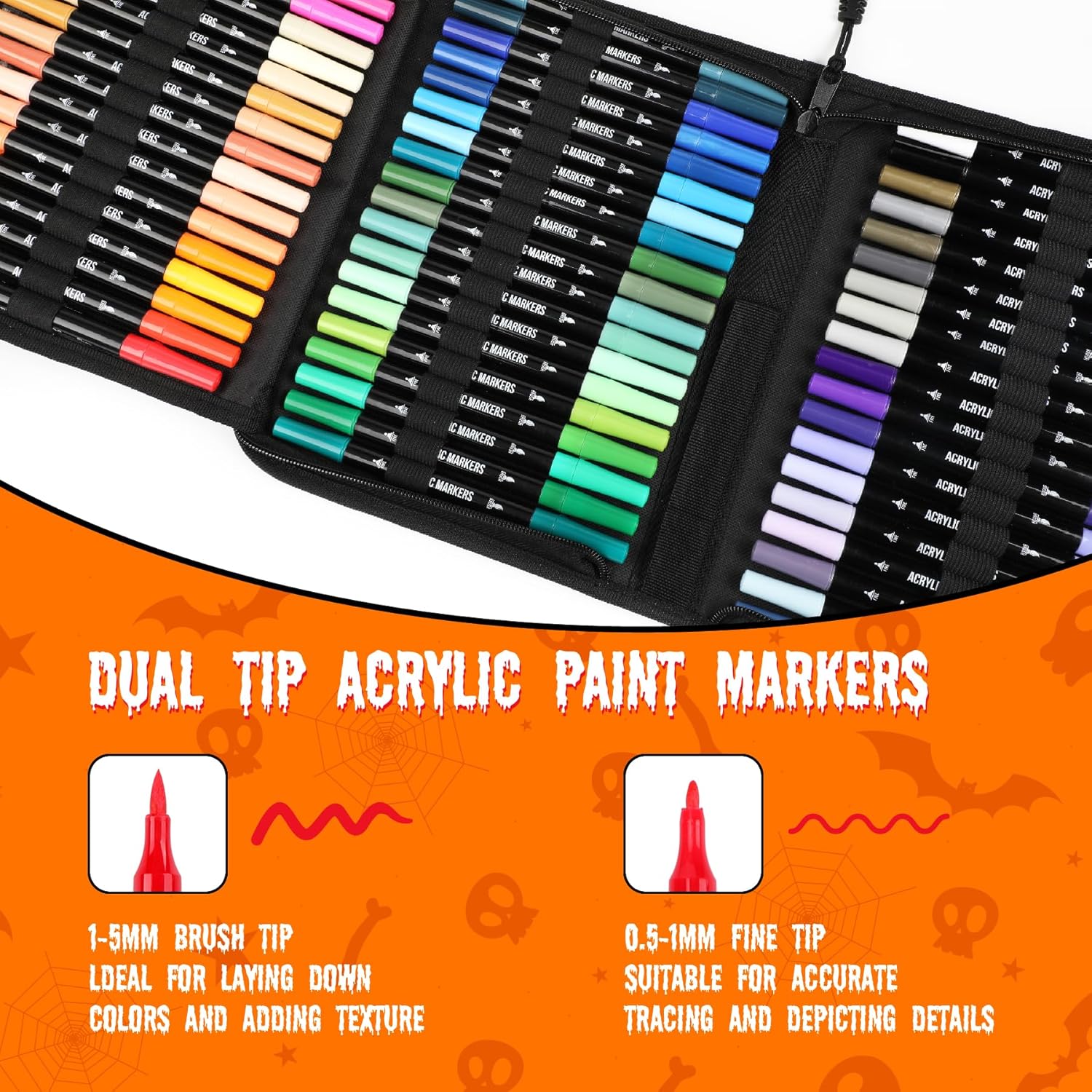72 Colors Acrylic Paint Markers, Dual Tip with Fine Tip and Brush Tip Pens for Stone, Wood, Calligraphy, Canvas, Ceramic, Metal, Glass, Rock Painting, DIY Crafts Art Supplies Kit