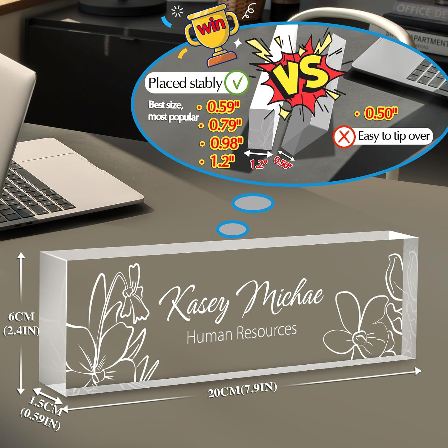 - 【Thickness upgraded to 0.79-1.18 inches】 According to market research, most people who received 0.59-inch thick acrylic nameplates would have problems with instability and easy to tip over, which would bring a terrible shopping experience. From the customer's perspective, we pause Selling a 0.59-inch nameplate, we provide 0.79-inch/0.98-inch/1.18-inch thick acrylic for selection. The 1.18-inch size is the most popular gift size, More fashionable and atmospheric, We aim to bring your vision to life!