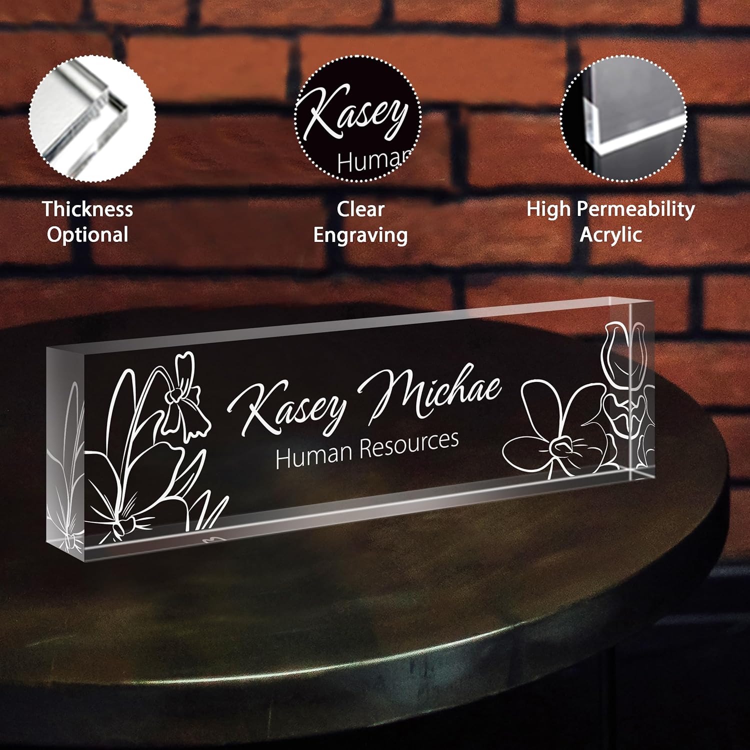 Personalized Name Plate for Desk - Custom Engraved Name Plates for Man - Boss Day Gifts for Boss - Acrylic Office Decor Appreciation Gifts for Teacher Nurse Coworker Social Worker (White Bloom)