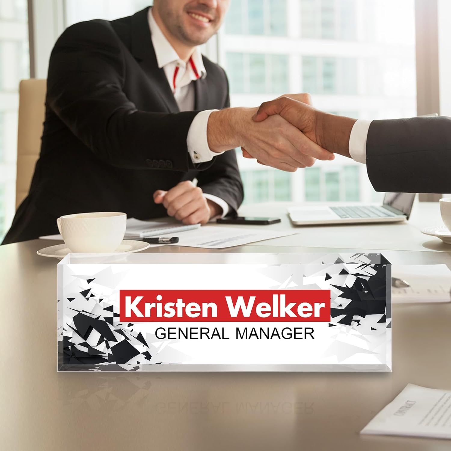 - 【Personalized Name Plate for Desk】Create a unique desk name plates in just four easy steps. We craft bespoke nameplates featuring your name and title, with options to choose your preferred style, design, and front. You can even upload your photo and logo for a truly personalized nameplate. Our talented design team is dedicated to bringing your vision to life. Elevate your office with a professional and unique nameplate that reflects your style.