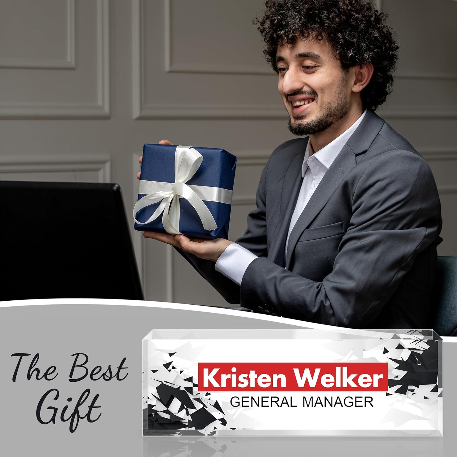 - 【Boss Day Appreciation Gift】 Customized desk name plates are a memorable and unique Boss Day gift. It is an ideal way to express appreciation to coworkers, managers, supervisors, bosses, etc. Perfect for promotions, employee recognition, Boss Day, Nurses Week, Teachers Day, and more. This thoughtful gift shows your care and appreciation and comes with a charming gift box and gift-wrapping service to make it even more special. Perfect as boss day gifts