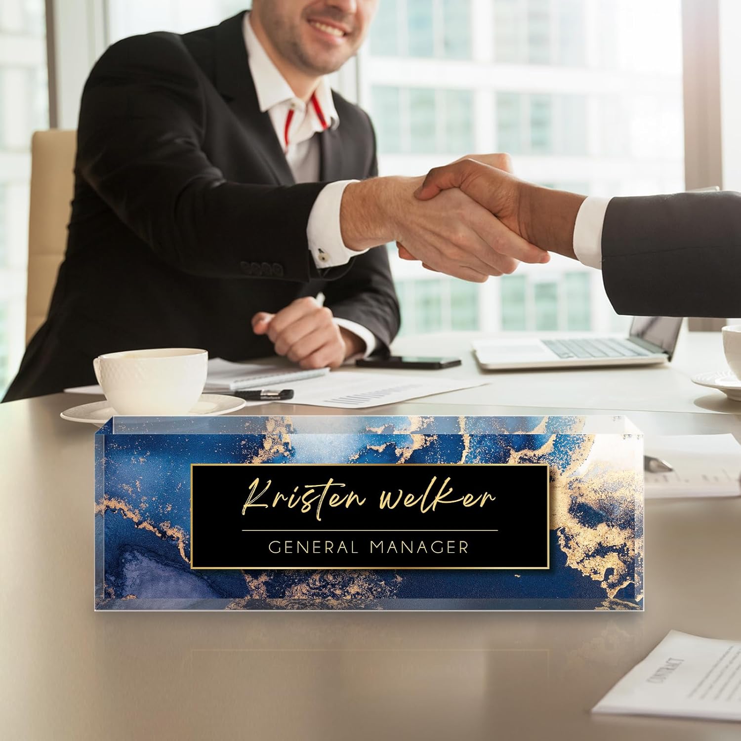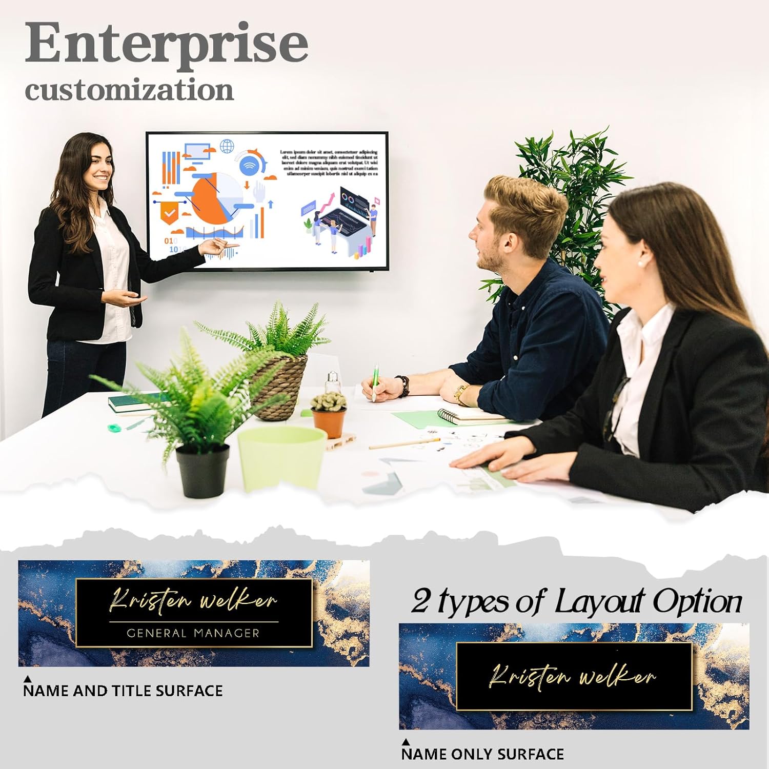 - 【Personalized Name Plate for Desk】Create a unique desk name plates in just four easy steps. We craft bespoke nameplates featuring your name and title, with options to choose your preferred style, design, and front. You can even upload your photo and logo for a truly personalized nameplate. Our talented design team is dedicated to bringing your vision to life. Elevate your office with a professional and unique nameplate that reflects your style.