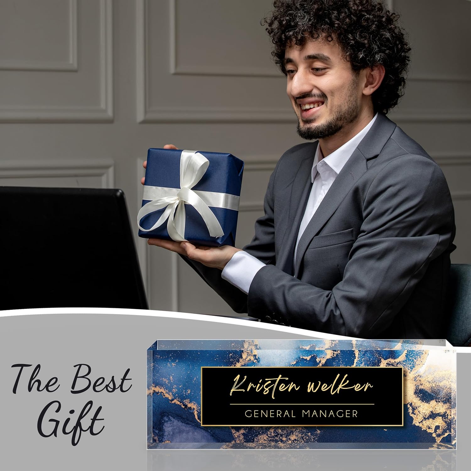 - 【Boss Day Appreciation Gift】 Customized desk name plates are a memorable and unique Boss Day gift. It is an ideal way to express appreciation to coworkers, managers, supervisors, bosses, etc. Perfect for promotions, employee recognition, Boss Day, Nurses Week, Teachers Day, and more. This thoughtful gift shows your care and appreciation and comes with a charming gift box and gift-wrapping service to make it even more special. Perfect as boss day gifts