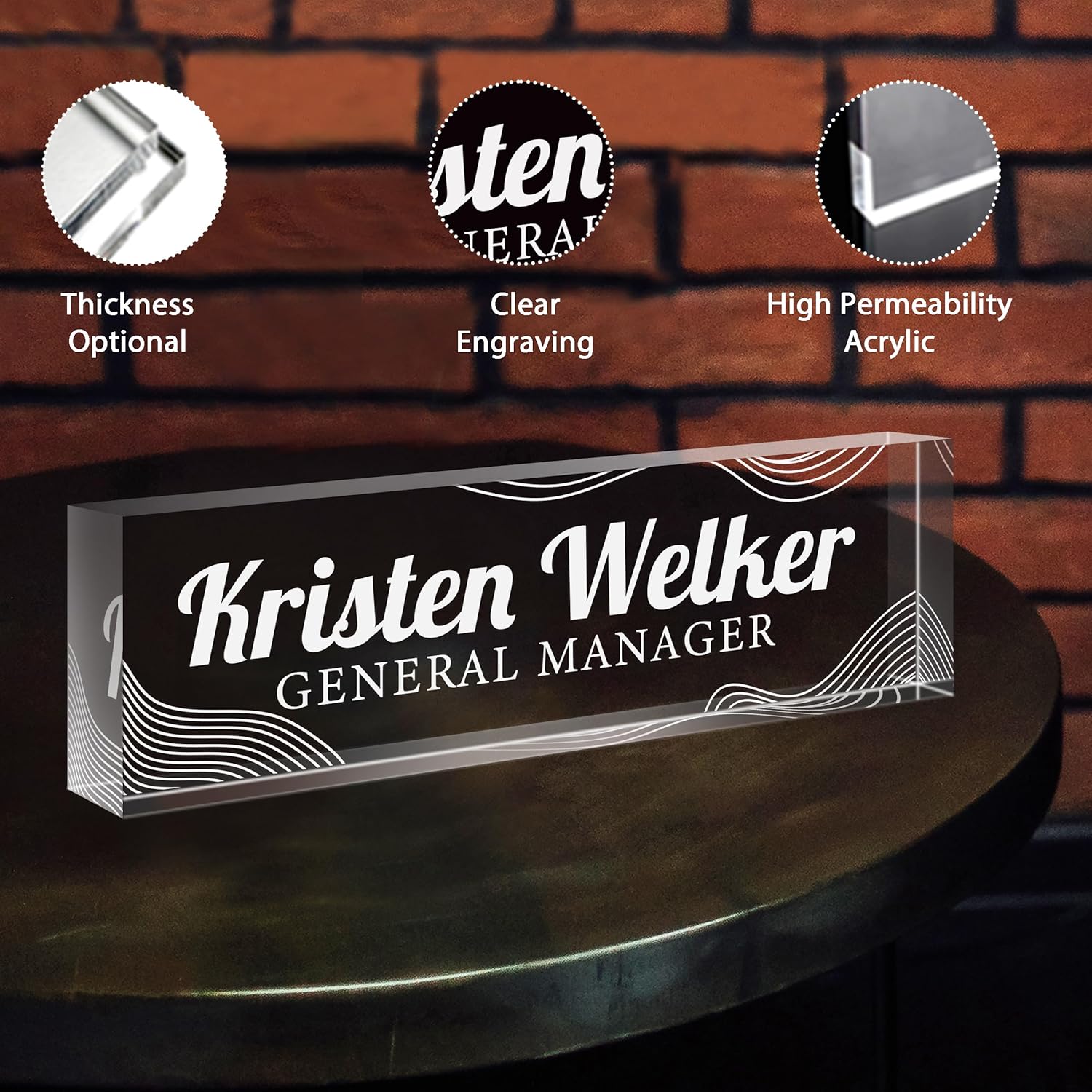 Personalized Name Plate for Desk - Custom Engraved Name Plates for Man - Boss Day Gifts for Boss - Acrylic Office Decor Appreciation Gifts for Teacher Nurse Coworker Social Worker (White Lines)