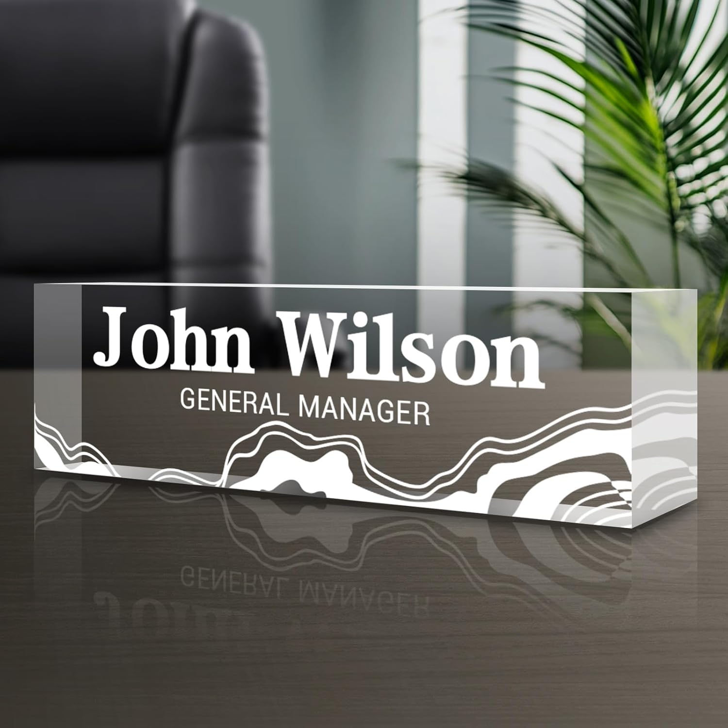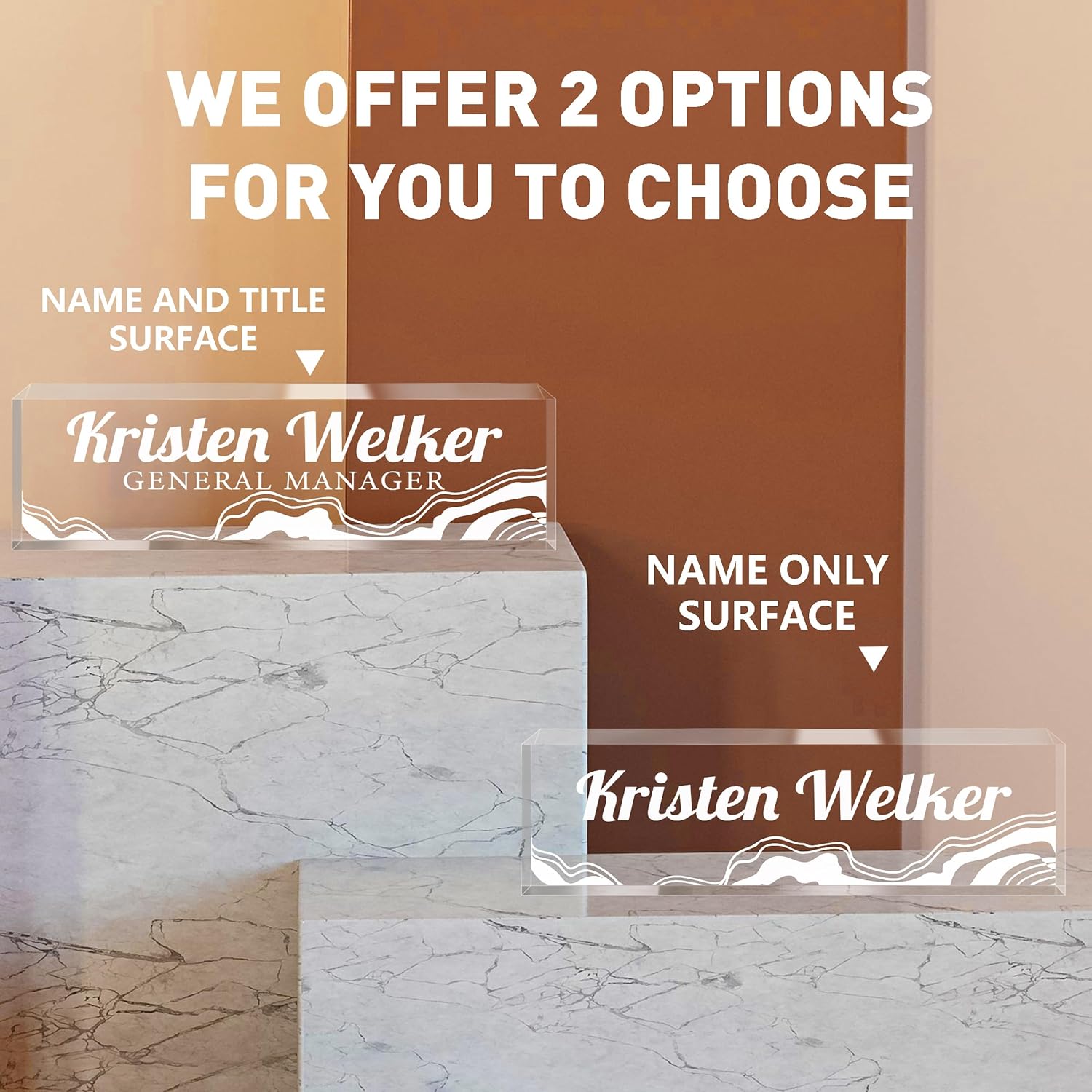 - 【Personalized Name Plate for Desk】Create a unique desk name plates in just four easy steps. We craft bespoke nameplates featuring your name and title, with options to choose your preferred style, design, and front. You can even upload your photo and logo for a truly personalized nameplate. Our talented design team is dedicated to bringing your vision to life. Elevate your office with a professional and unique nameplate that reflects your style.