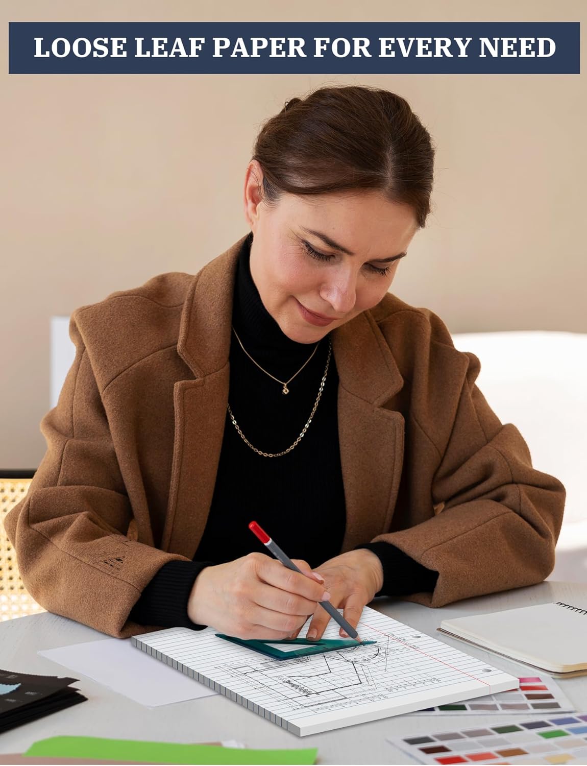 - 【High Quality Paper】- The 3-hole punched lined paper measures 8.5’’ x 11’’, made of 70gsm paper material, thicker than average loose leaf paper pads. Pads of paper smooth, premium-weight paper allows your ballpoints and ink gel pens to glide across the page. Loose leaf binder paper 8.5 x 11 wide ruled writing stays on the surface and resists ink bleeding and show-through. White paper pads each pad has 100 sheets, with 3 pads per pack.