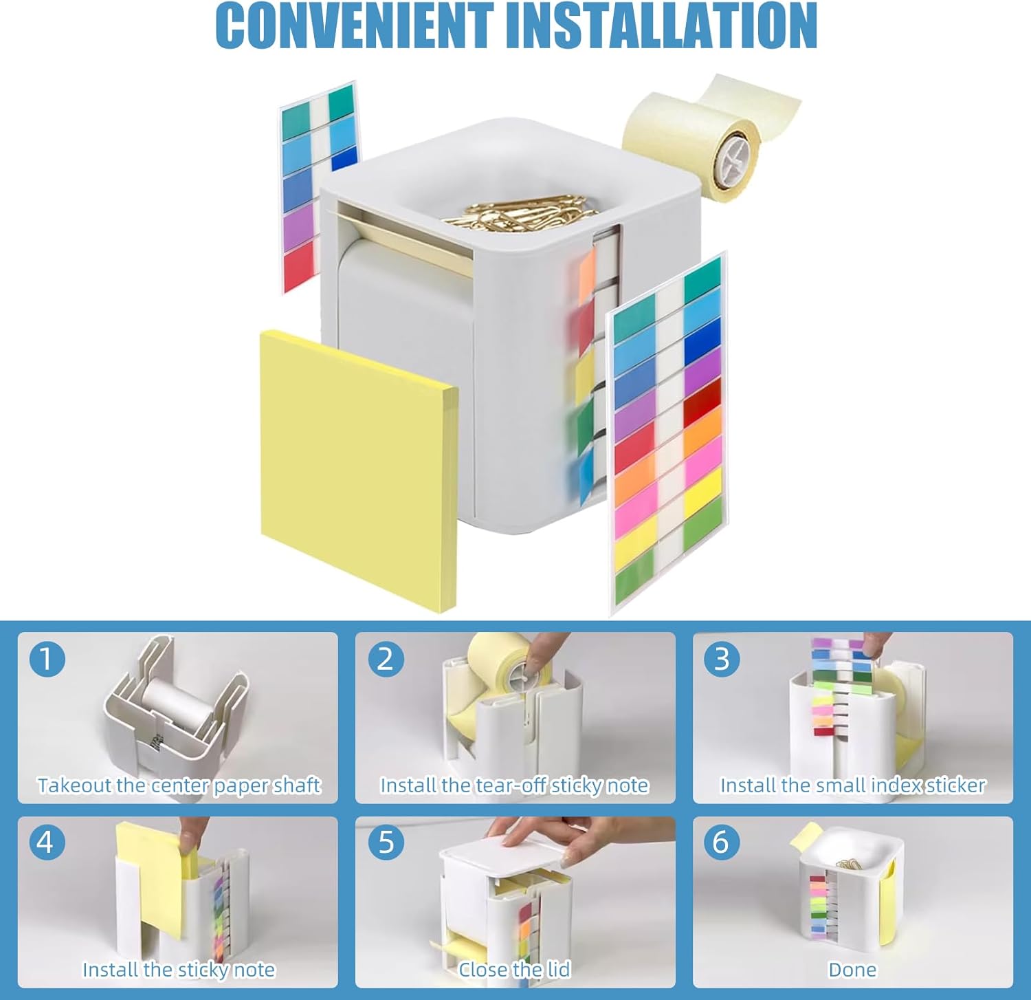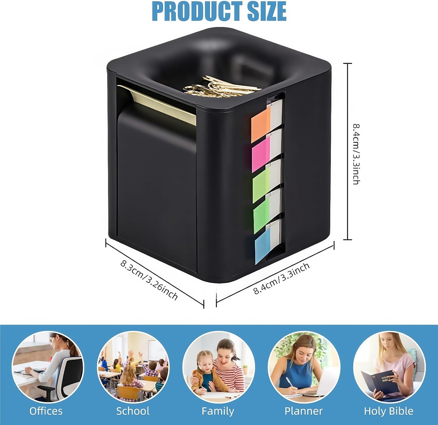 - 5-in-1 Desk Organizer for ultimate efficiency β combines pop up sticky note dispenser , magnetic paper clip holder , sticky tabs dispenser , roll sticky notes , and transparent sticky notes in 1 compact cube