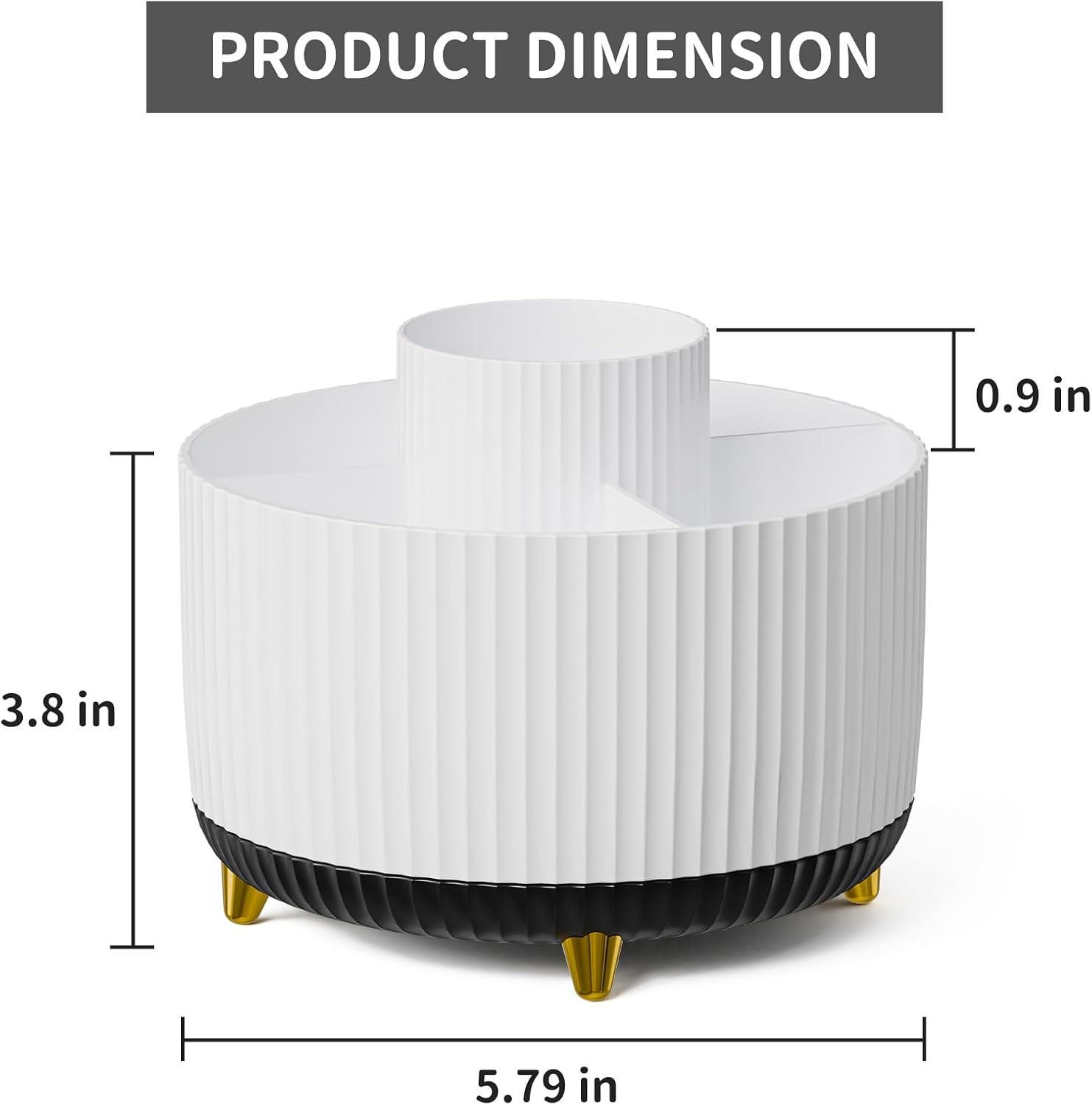 Marbrasse Desk Organizer, 360-Degree Rotating Pen Holder, Desk Organizers and Accessories with 5 Compartments Pencil Holder, Art Supply Storage Box Caddy for Office, Home (White+Black)
