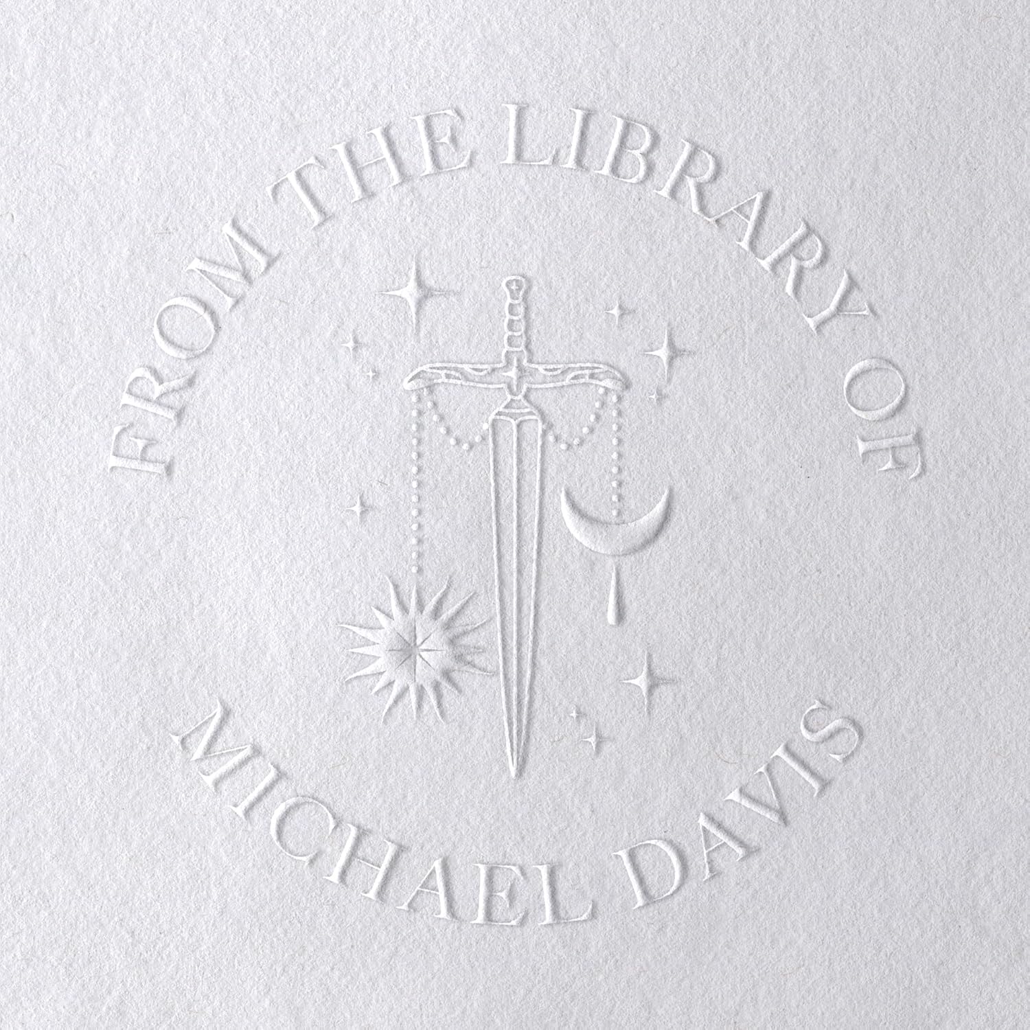 Personalized Book Embosser or Book Stamp, Custom Round Library Book Embossing Tool, Teacher School Book Stamp, Ex Libris Stamp, Gift for Book Lover, Wooden Stamp or Self Inking Stamp (Celestial Sword)
