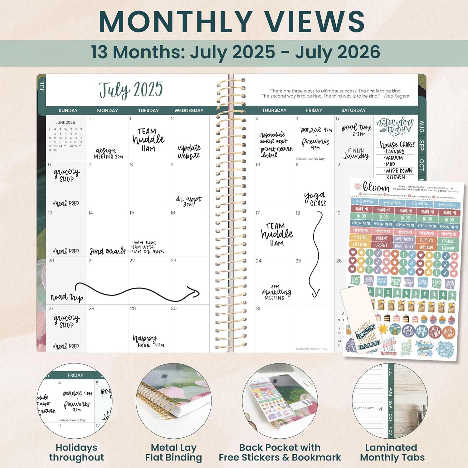 - EFFORTLESS WEEKLY & MONTHLY LAYOUT: This day planner features two-page monthly planner spreads and spacious horizontal weekly layouts, running from July 2025 through July 2026—perfect for tracking your tasks, deadlines, and appointments.