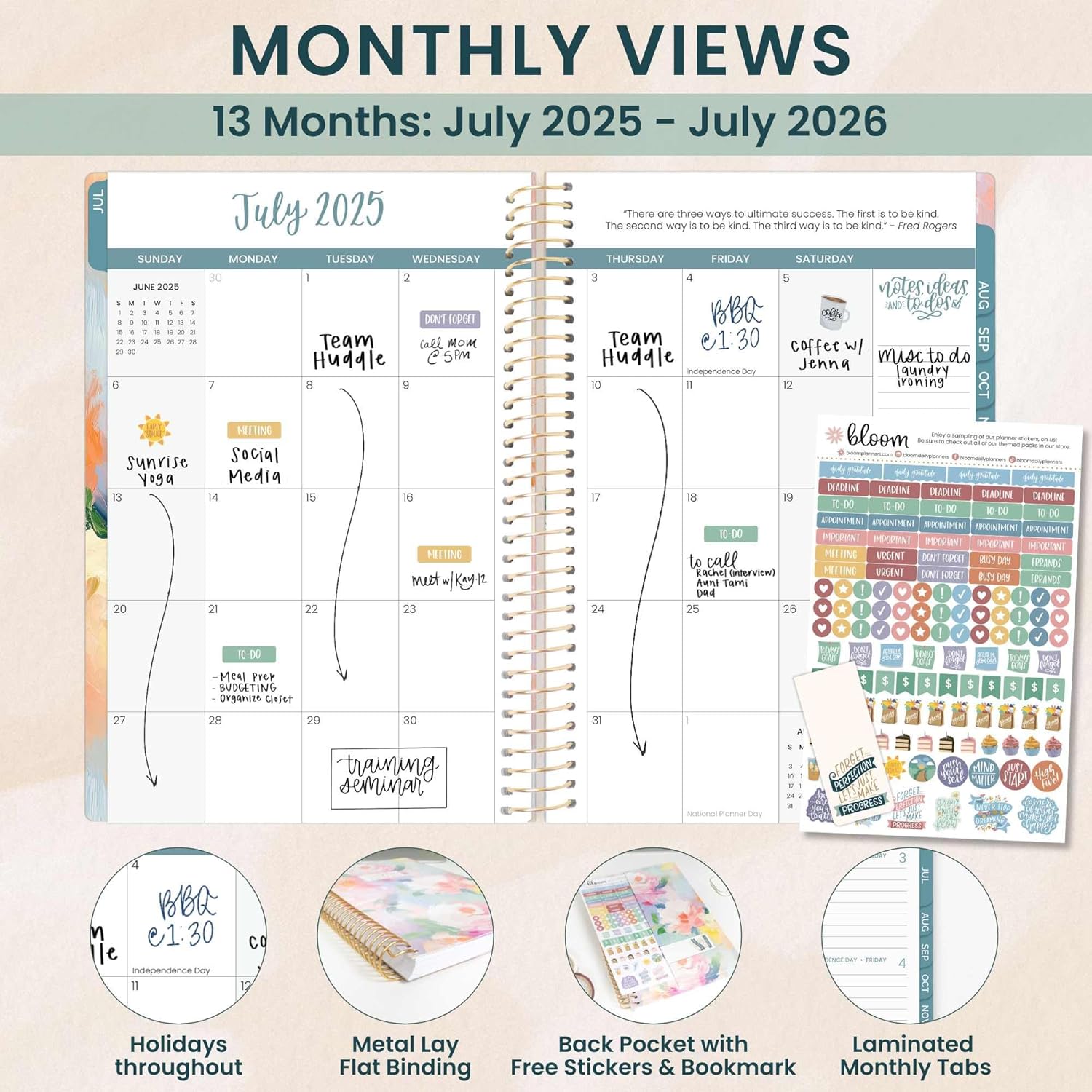 bloom daily planners 2025-2026 Academic Year Daily Planner (July 2025 - July 2026) - A5 Weekly & Monthly Calendar Agenda Organizer Book with Stickers - 5.5" x 8.25" - Painted Peonies