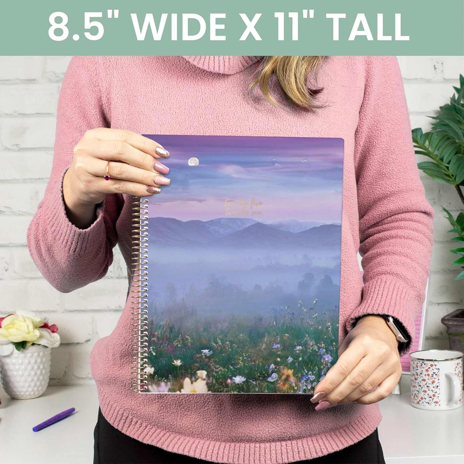 - 8.5” x 11” WITH HORIZONTAL WEEKLY LAYOUT & MONTHLY VIEWS: 2 page monthly overview spreads and spacious weekly views run Academic Year, July 2025 through July 2026. Weekly views are horizontal and include priority & habit tracking.