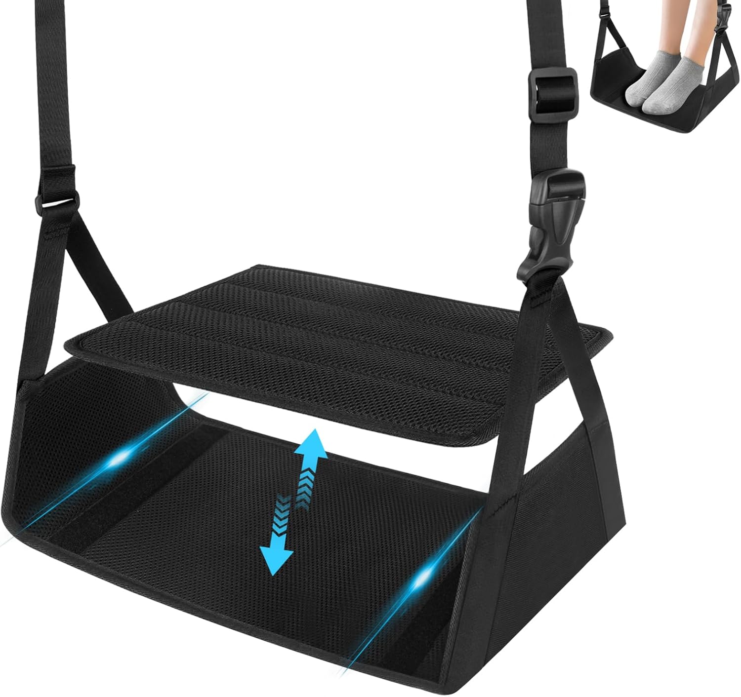 - โ[Comfortable and Adjustable]: Our foot hammock is designed with adjustable straps, the airplane leg rest features adjustable straps ranging from 20 to 30 inches, accommodating passengers of various heights, no matter you are a man, a woman, an adult or a child, you can adjust the length of the straps according to the height and ensure optimal comfort and support tailored to your needs. Airplane footrest is made of high quality fabrics and is lined with comfortable memory foam, using airplane footrest can reduce the swelling and soreness of your legs, making your air travel more comfortable.