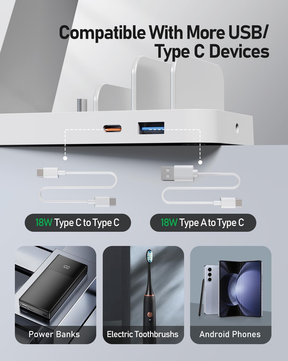 - Included Components : 36W Charger Adapter, 5 in 1 Charging Station, Type-A to Type-C Cable, Type-C to Type-C Cable, Use Manual 36W Charger Adapter, 5 in 1 Charging Station, Type-A to Type-C Cable, Type-C to Type-C Cable, Use Manual