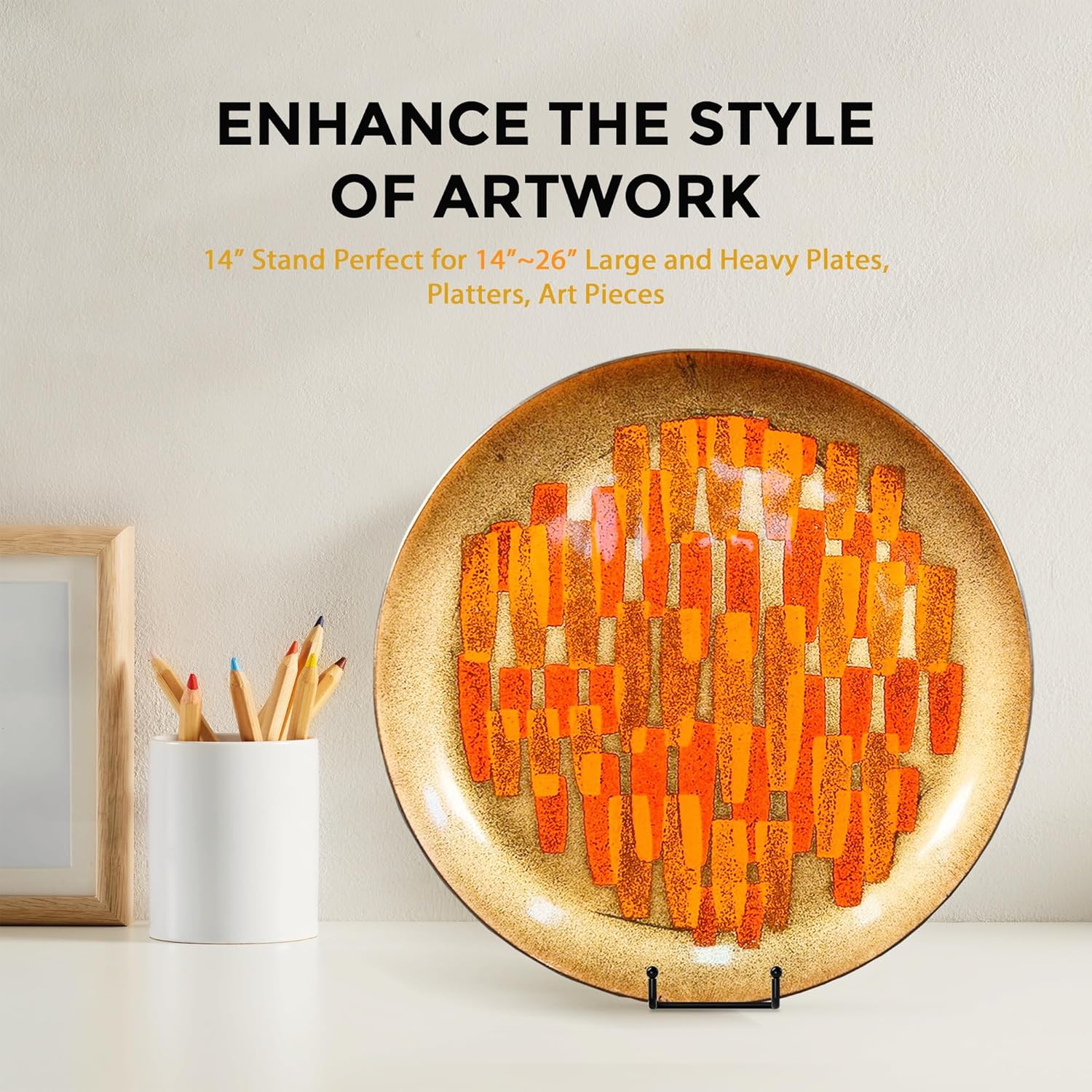 - Versatile 14-Inch Plate Holder Stand: Sturdy design with a 2.75-inch deep lip, 10Β° tilt angle, and 4-inch wide base securely holds items from 14 to 34 inches and up to 20 lbs, ideal for tall plates, picture frames, posters, signs, and platters