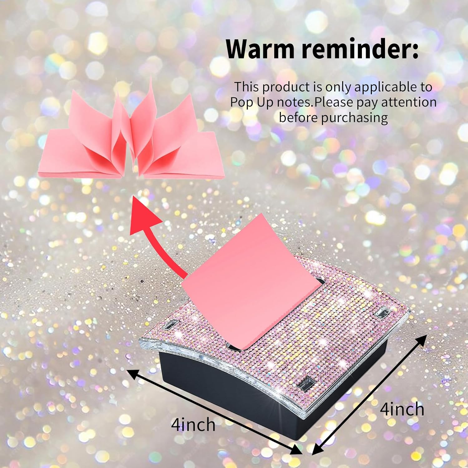 Rhinestone Self Sticky Note Holder Post it Note Dispenser Pop-Up Sticky Notes Dispenser 3 x 3 inch Post it Dispenser for Office Desk Accessories(Pink)