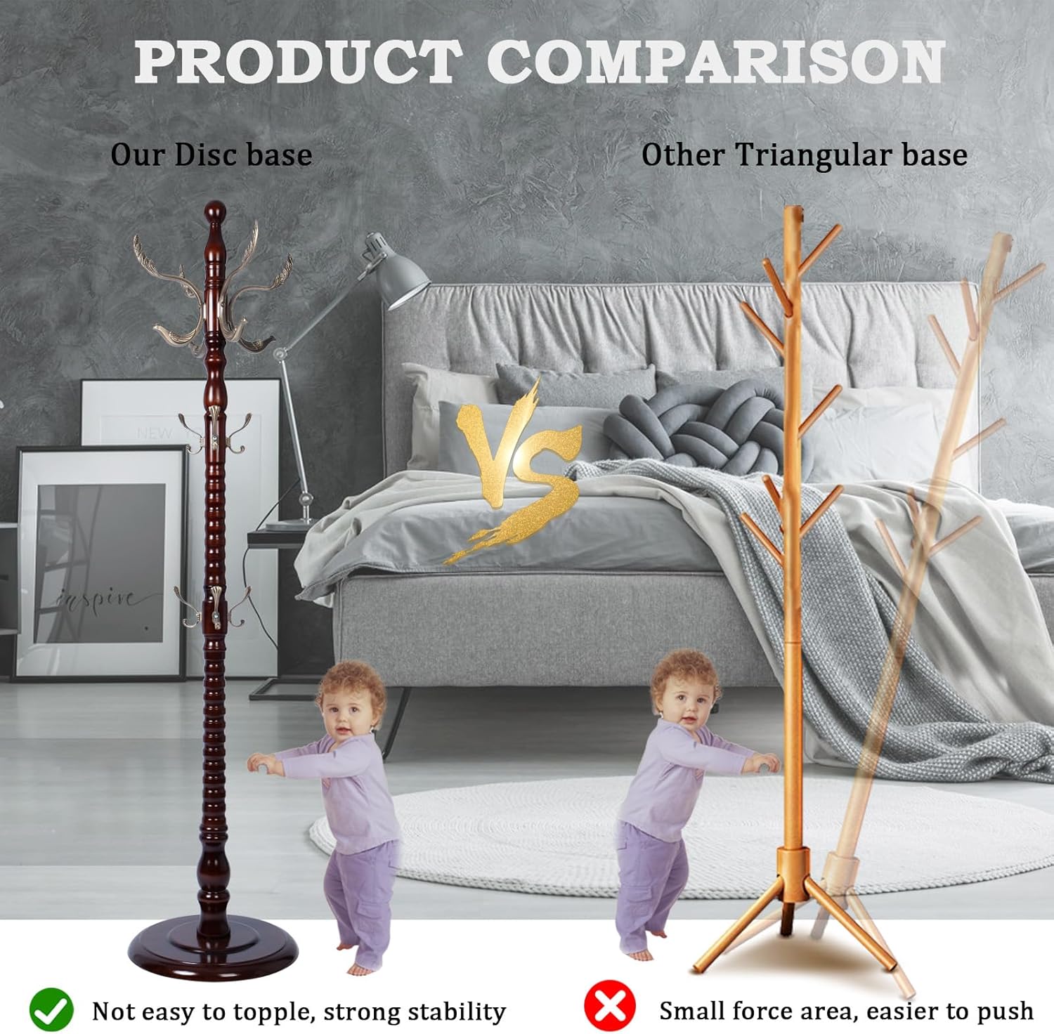 - 【HIGH-GRADE COAT RACKS】This Wooden coat rack is designed in stylish and simple style, made ofenvironmentally friendly high-quality birch material, the bright polished paint and natural wooden make it so generous.