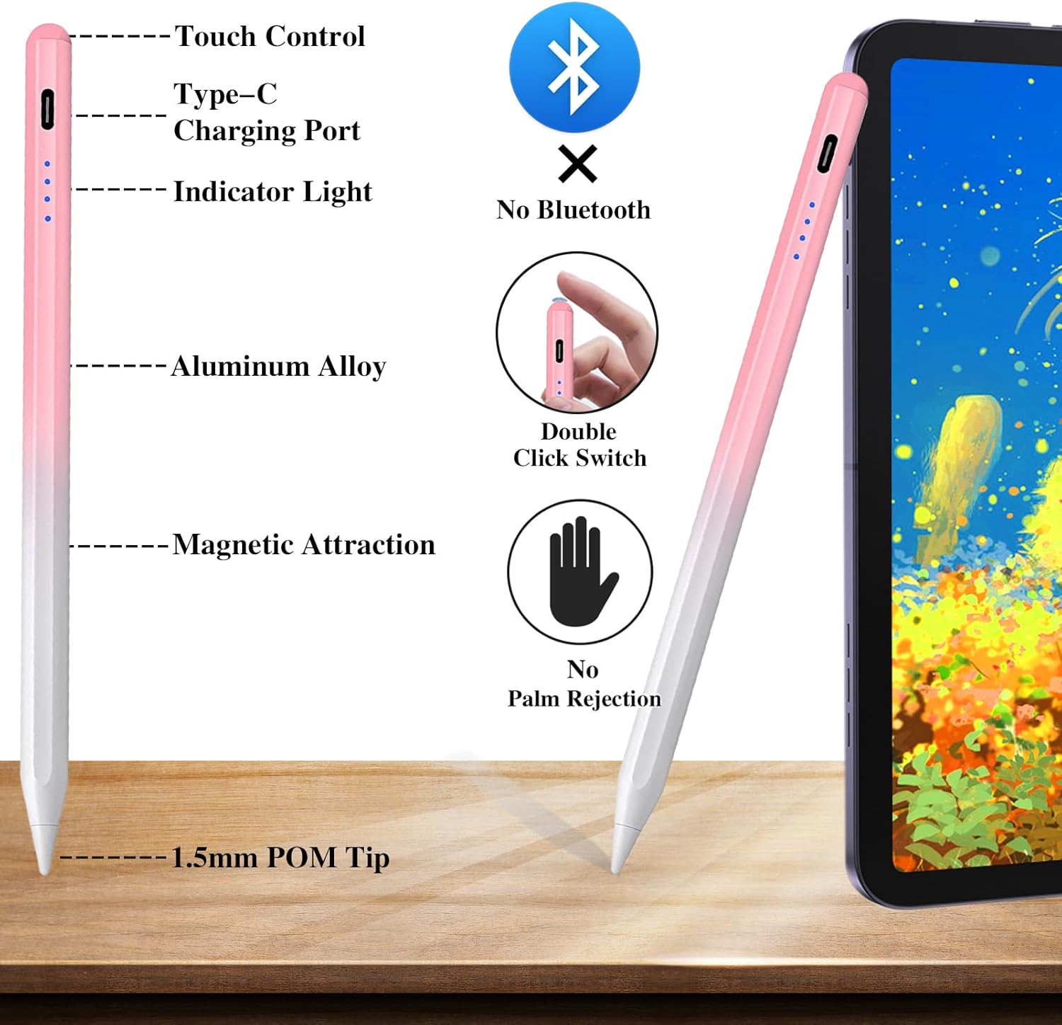 - [After-Sales Service]- If you encounter any issues,here are some helpful tips: ①Make sure the drawing stylus has enough electricity. ②The low-quality screen protector or toughened film results in bad electric conductivity.③The apple ipad pen does not support palm rejection④If your device was previously connected to an Apple Pencil via bluetooth, Please turn off bluetooth to use our ipad pens.Our cheap styluses support 1-year product warranty and a 1-month free return and exchange policy