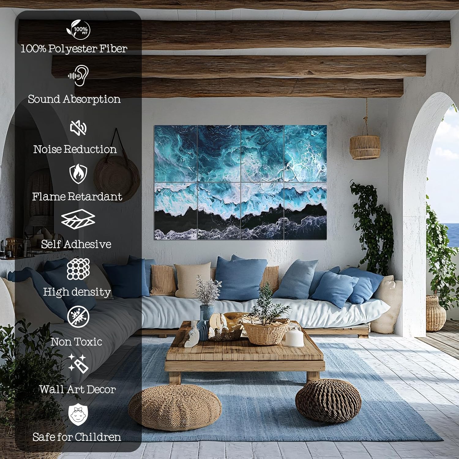 8 Pack Acoustic Panels, Soundproof Wall Panels, 48X32Inches Sound Proof Panels for Walls, Sound Absorbing Wall Art Decorative, Sound Dampening Panels for Recording, Home Studio(Black Beach)