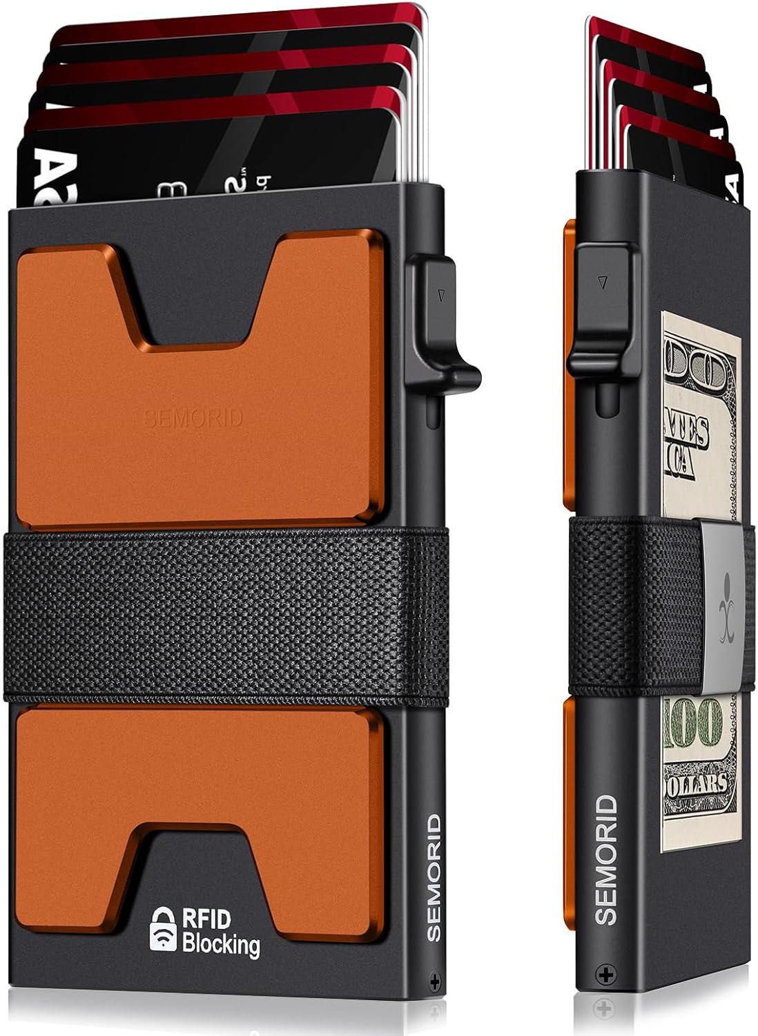 - π³ ULTRA THIN PROFILE (SLIM WALLET FOR MEN): The minimalist tactical wallet is very thin and can be carried comfortably in a pocket. The aluminum cardholder size is 3.9*2.5*0.5in,weight only 2.6oz. And expandable backplate designed for additional storage. Ditch the bulk, less is more.