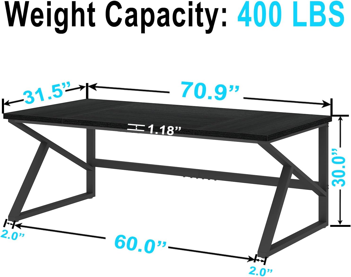 - ăSpacious Work Space & Leg Roomă: Measuring 31.5"D x 70.8"W x 29.5"H overall, this long black desk offers ample space to accommodate multiple monitors, pc, laptop, printers, files, books, lamps and any other office essentials, ensuring you have everything you need within arm's reach for enhanced productivity. The desktop is crafted from three meticulously joined panels, creating a cool cross-grain effect. Featuring two K-shaped metal legs with an open structure, this large computer desk for home office provides ample leg room, promoting comfort during extended periods of use.