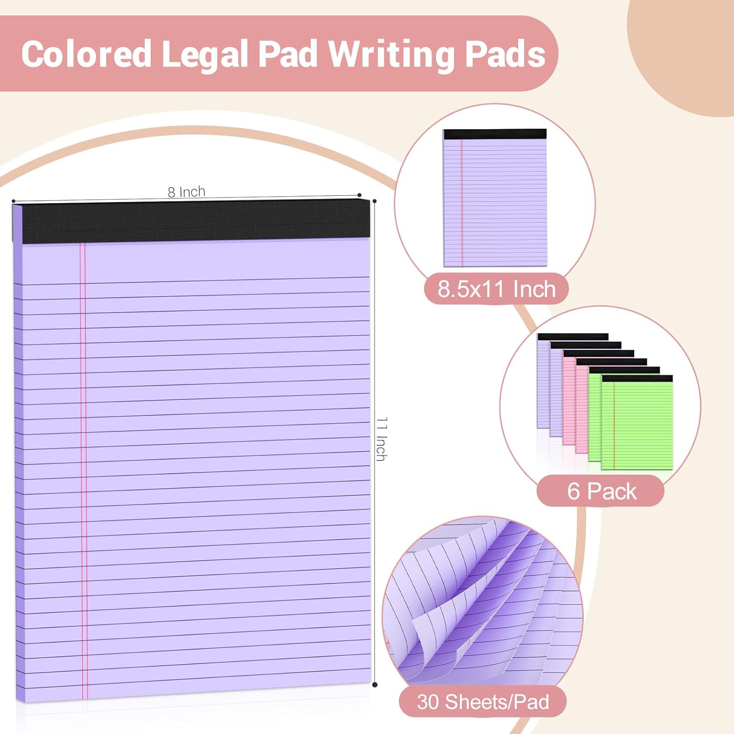 Legal Pads 8.5 x 11 Inch, 6 Pack, Colored Notebook Paper, 8.5 x 11 Colored Legal Pad, Micro Perforated Lined Paper Notepads 8.5 x 11, 30 sheets, Colored Paper Writing Pads for Office Home School