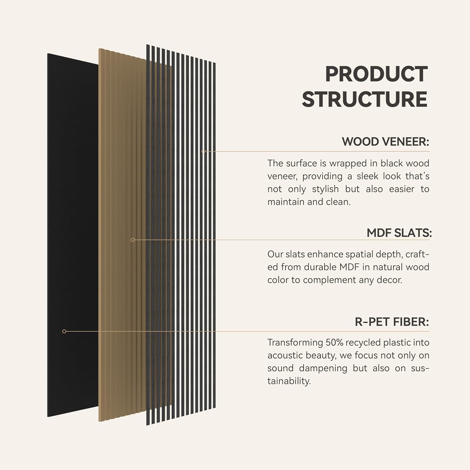 - Clean Modern Finish: Each acoustic wall panel features a realistic wood-textured surface, offering a natural look and feel with no extra finishing needed