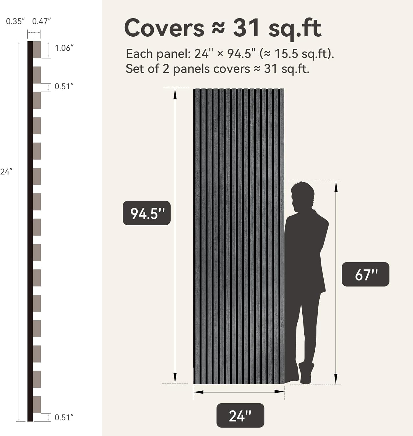 Upick MDF Acoustic Wall Panels Sound Absorbing, 2 Pack 94.5 x 23.4 inch Sound Proof Foam Wall Panels & Wood Slat Wall Panels for Interior Wall Decor, Matte Black