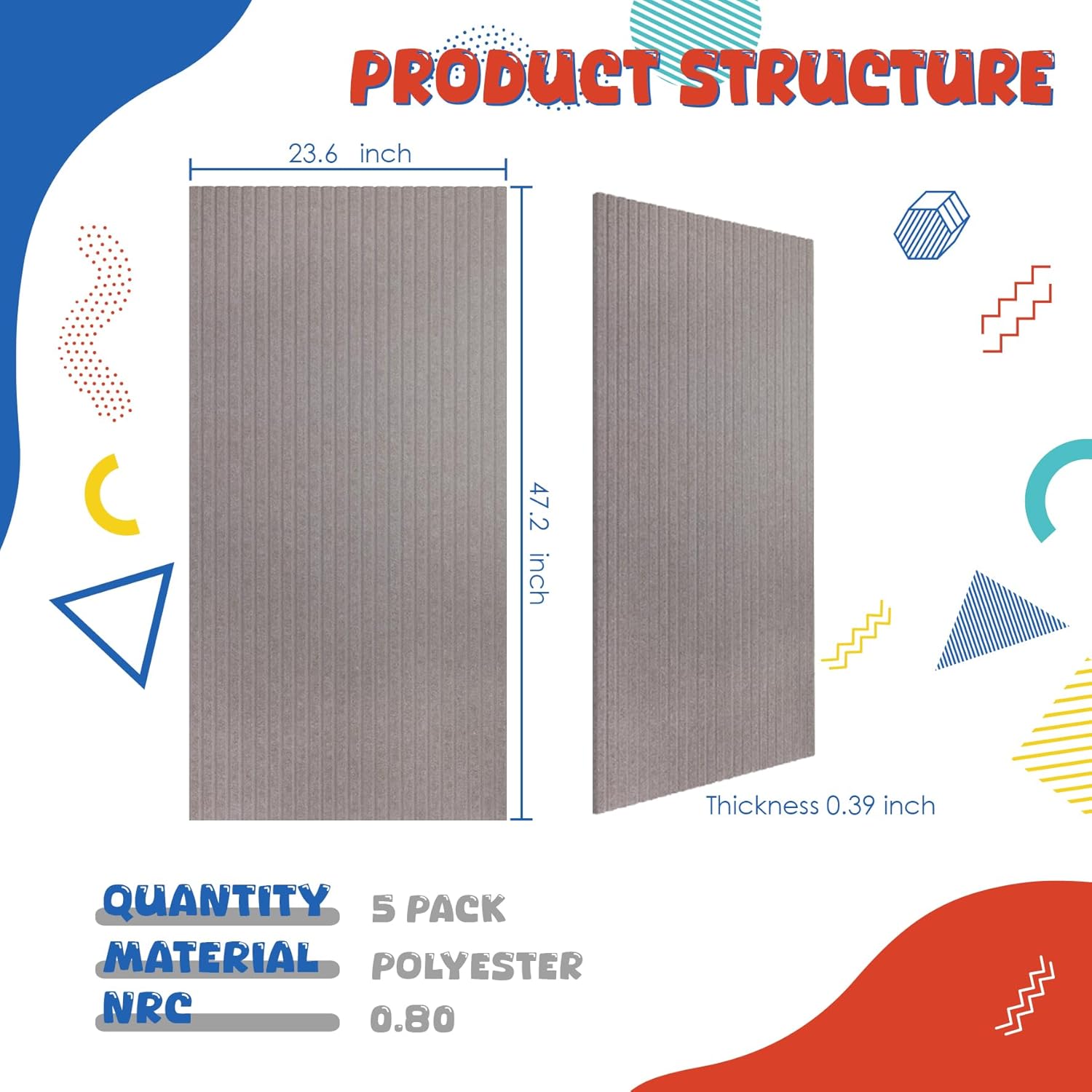 5 Pack Acoustic Panels,47.2x23.6x0.4 inch Acoustical Wall Panels,Large Soundproof Panels,Self-Adhesive Sound proof panels for walls,Acoustic Treatment for Recording Studio&Office Vertical,Brown