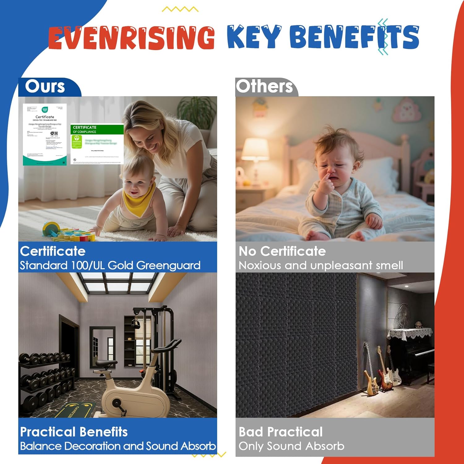 - 😟【WIDELY USE】 This large sound absorbing panels can well absorb the echo and noise,Effectively improve your sound environment and quality.such as home studios, gyms, game rooms, computer rooms, video shooting venues, rehearsal rooms, concert halls, recording studios, schools, conference rooms, Home theater, office,and more.