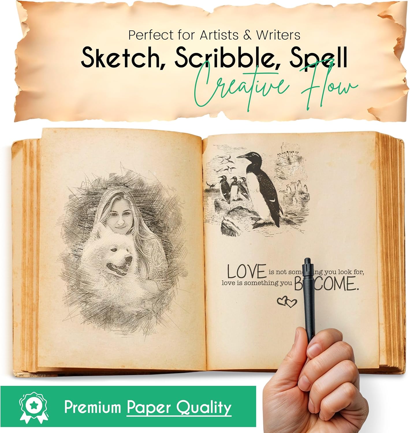 - ππ’π§π§π’π‘ π§ππ₯πππ πππ‘πππ‘π: Expertly hand-stitched with durable cotton thread, this handmade leather bound journal ensures all 200 antique deckle-edge pages remain intact. Its robust binding makes it a dependable blank leather journal for daily writing, sketching, or artistic projects that require a sturdy, lasting notebook.