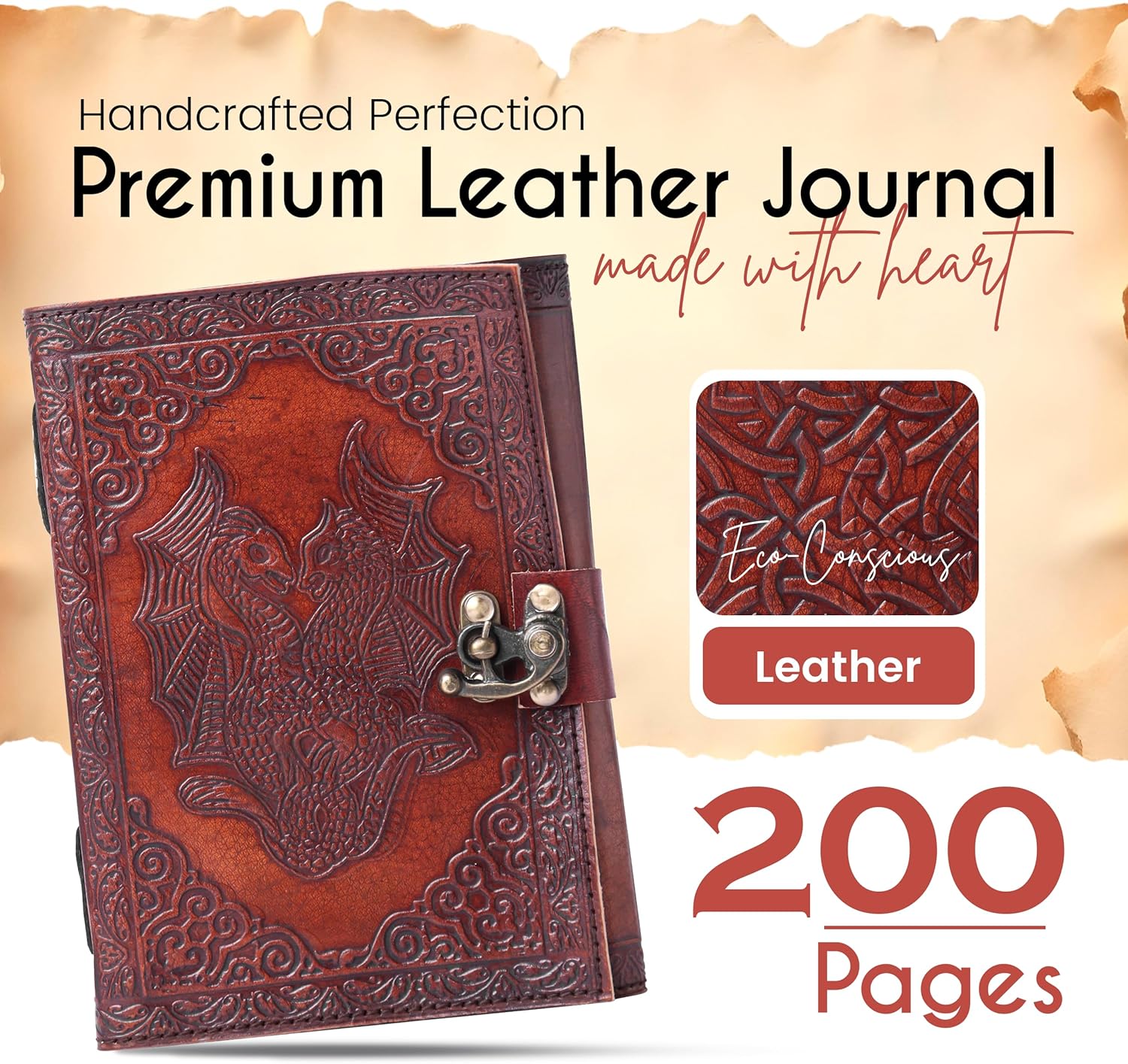 - π§πͺππ‘ ππ₯πππ’π‘ πππ‘πππ₯πππ§ππ πππ¦πππ‘: This vintage spell book journal features two dragons beautifully embossed on the leather cover. The mystical twin dragon artwork adds charm to this book of shadows journal, symbolizing power, protection, and the balance of masculine and feminine energies.